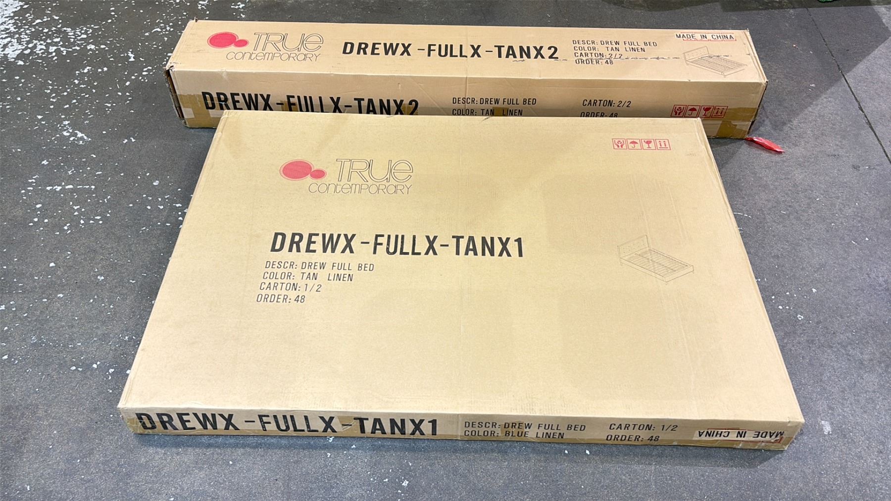 DREW FULL SIZE TAN BED FRAME *NEW IN BOX* (2 BOXES)