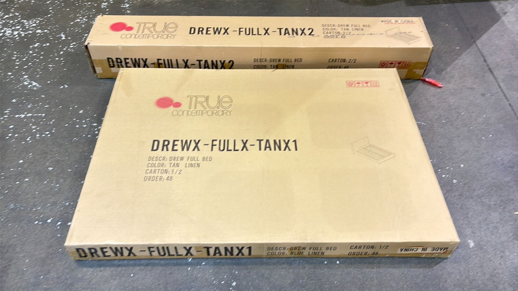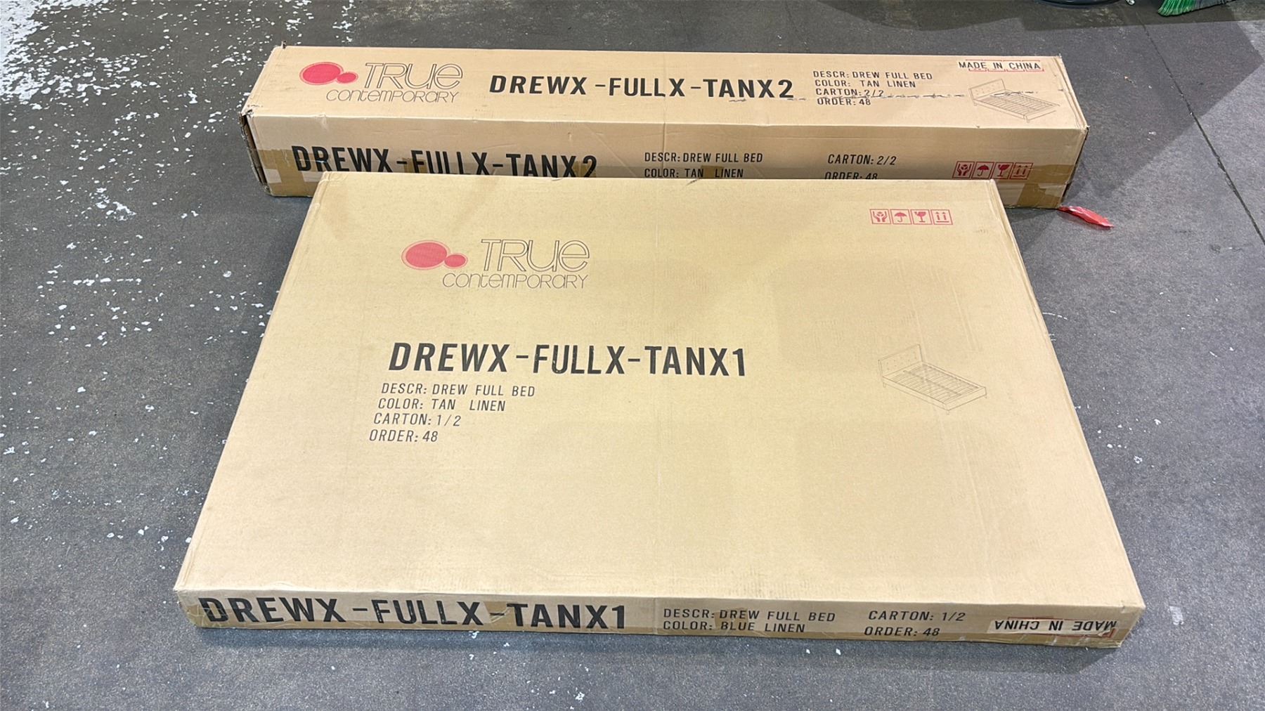 DREW FULL SIZE TAN BED FRAME *NEW IN BOX* (2 BOXES)