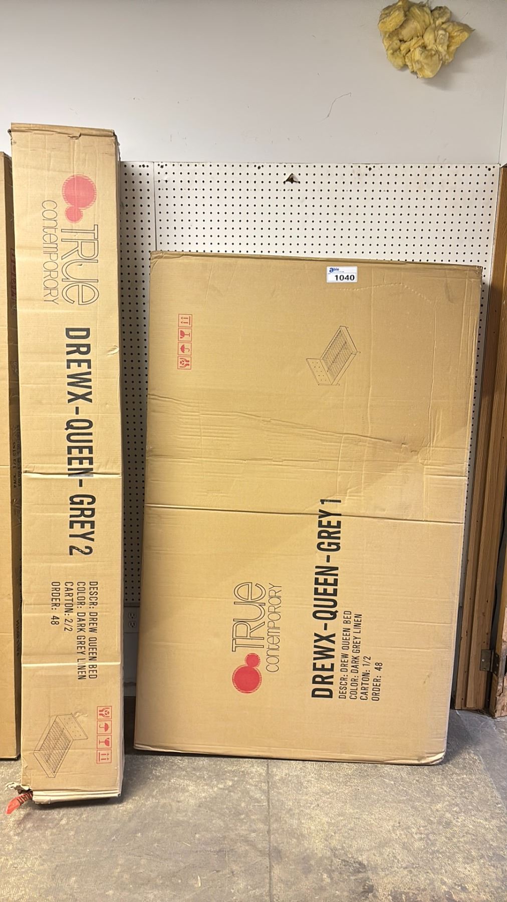 DREW QUEEN SIZE GREY LINEN BED FRAME *NEW IN BOX* (2 BOXES)