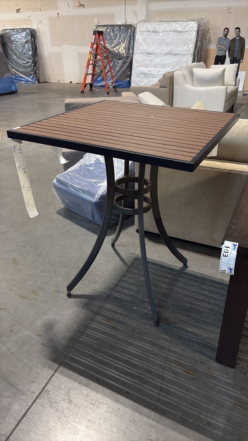 DURAWOOD BROWN APPROX 34"X34" BAR HEIGHT PATIO TABLE