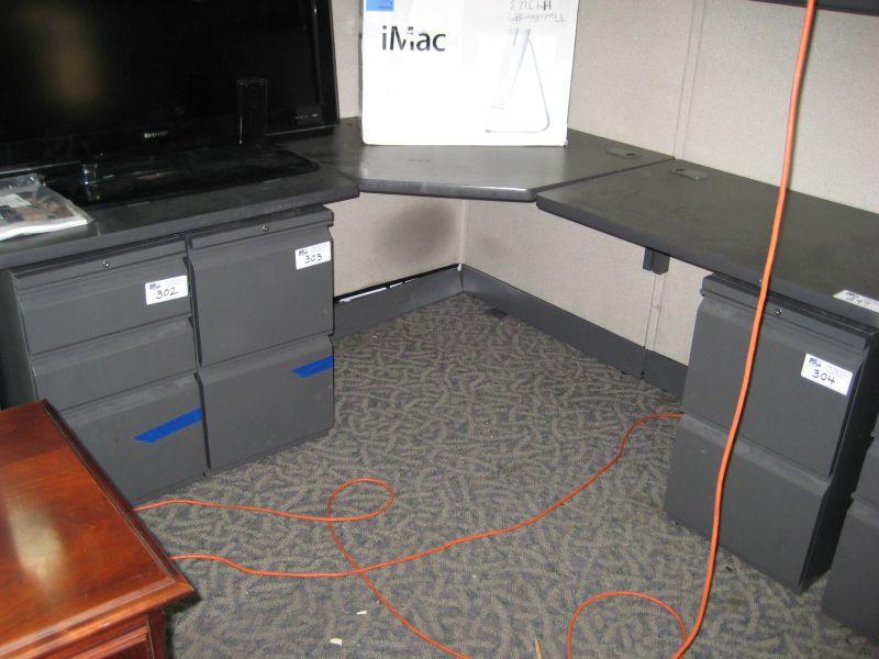 Dark Grey Hon "consensus" L Shape Workstation With Overhead Shelving