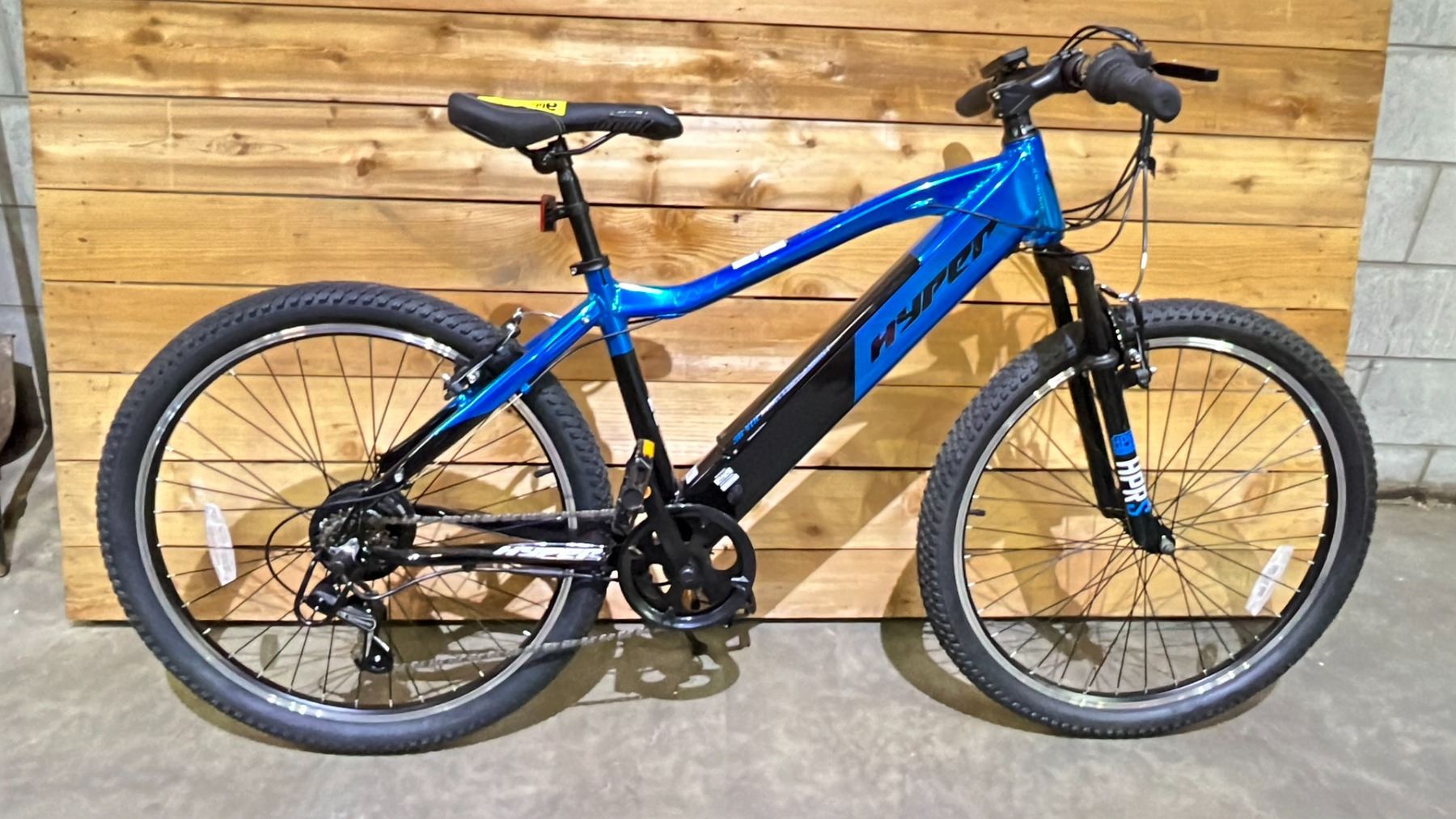 E-RIDE MOUNTAIN BLUE 6 SPEED ELECTRIC BIKE WITH KEYS *NO CHARGER/POWERS ON/WORKING CONDITION UNKNOWN*
