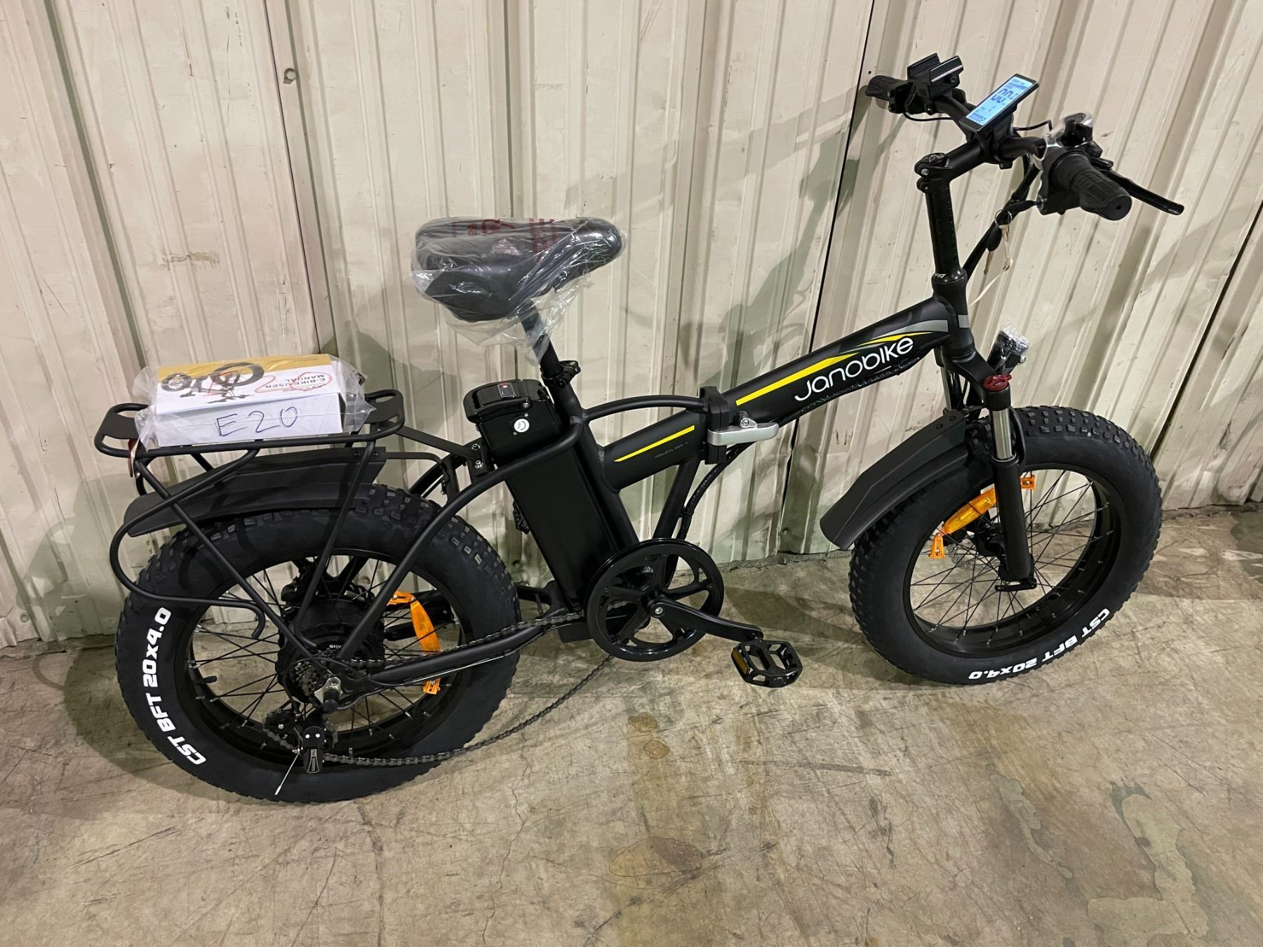 E20 ELECTRIC BIKE, FOLDABLE E-BIKE. 500W / 1000W MOTOR, 35 KMH MAX SPEED, 48 VOLT BATTERY, UP TO 75 KM RANGE, 4" X 20" TIRES, HYDRAULIC DISC BRAKES, 7 GEARS, 16" FRAME, 28 KG WEIGHT, FRONT FORK SUSPENSION, MAY OR MAY NOT INCLUDE LUGGAGE RACK, IN BOX
