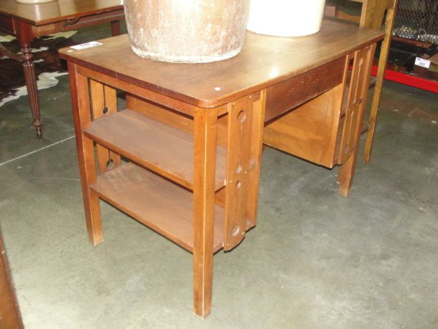 EARLY 1900S MISSION OAK ARTS AND CRAFTS SINGLE DRAWER WITH BOOKSHELF SIDES WRITING DESK