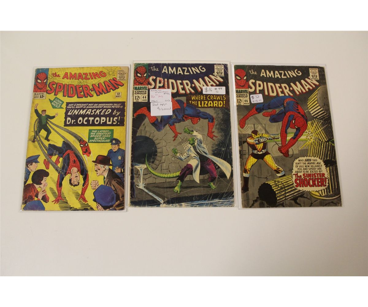 EARLY AMAZING SPIDER-MAN COMICS #12, 44 &6, THREE BOOKS TOTAL DOC OCK, THE LIZARD AND THE SHOCKER!! SOLID LOWER GRADE COPIES, GRAB 'EM UP!
