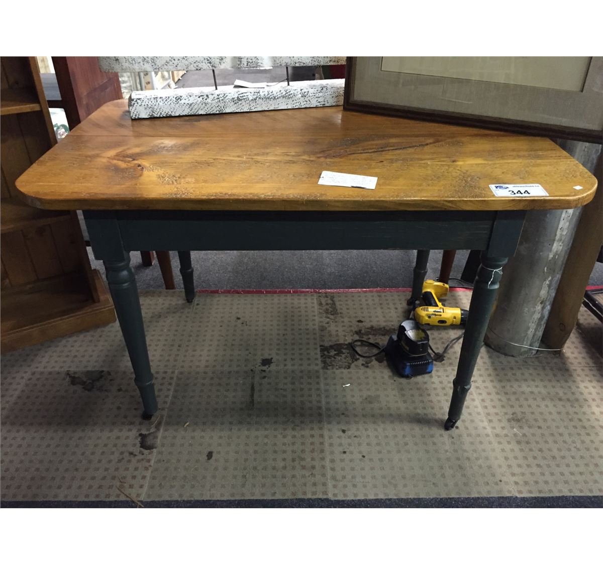 EAST KOOTENAY KITCHEN TABLE, WIDE BARN BOARD TOP AND CROSS SAW MARKS. CIRCA 1880 47" W X 29.5" D X 29" H