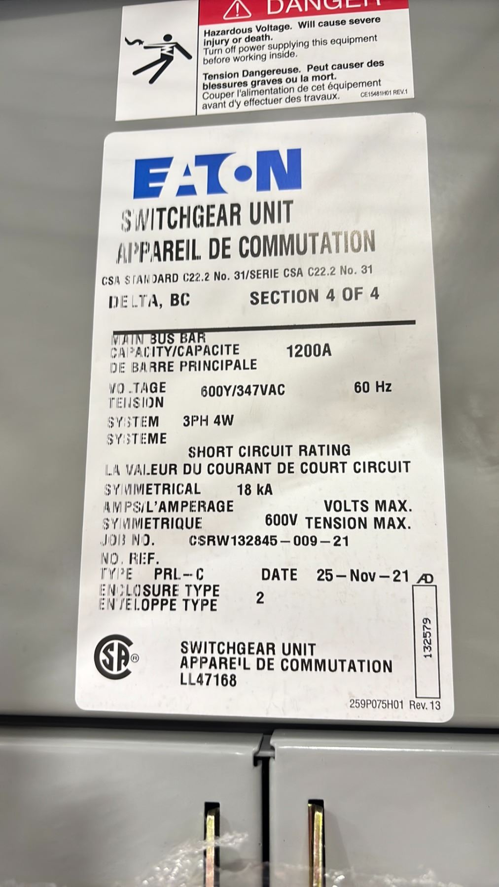 EATON 3 PH 60 HZ SWITCHGEAR UNIT