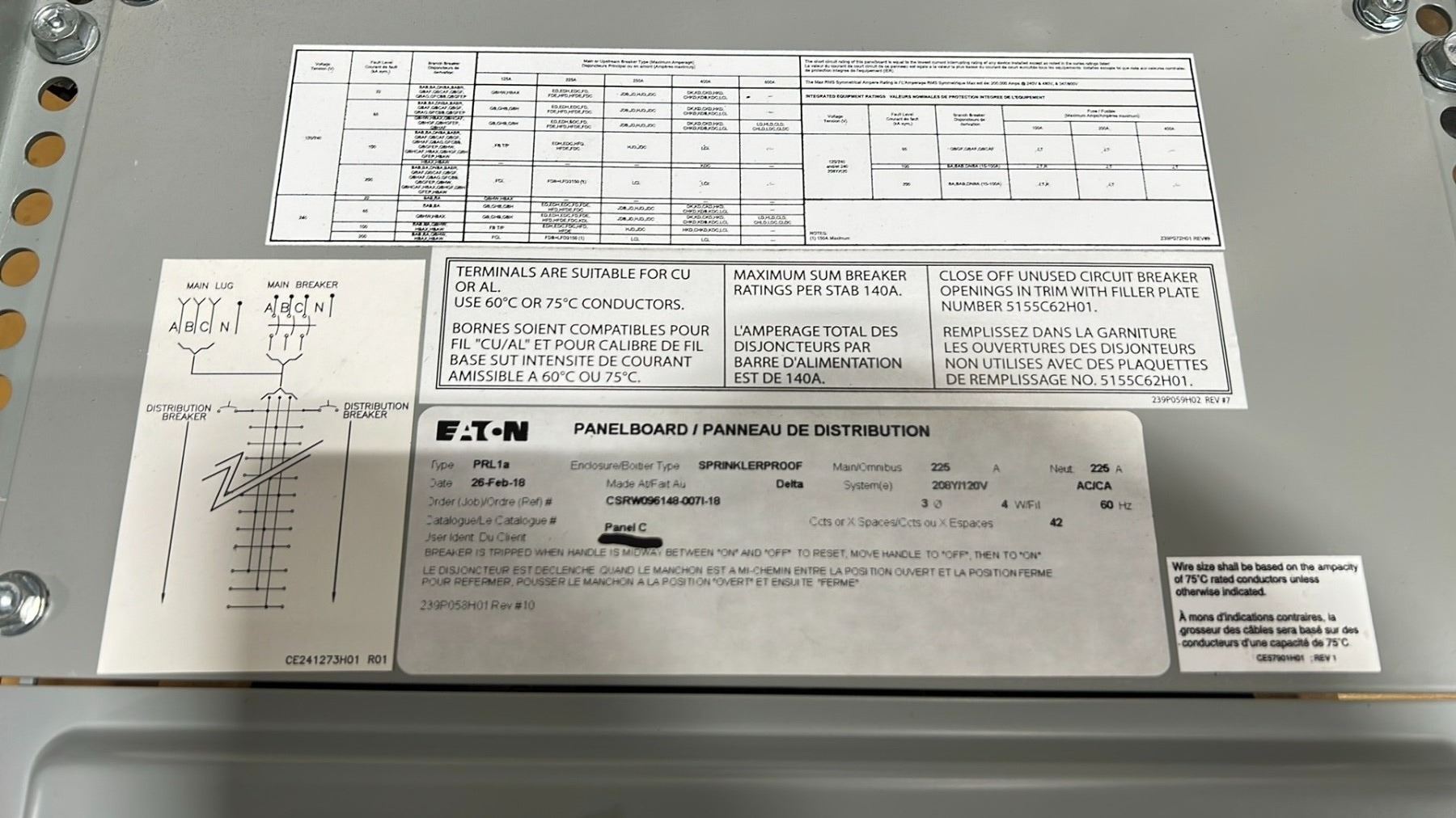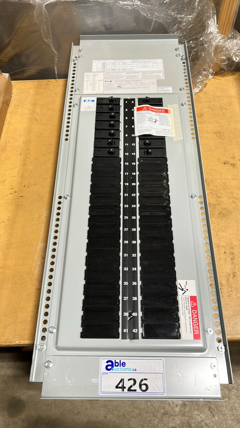 EATON POW-R-LINE COMMERCIAL 42 BREAKER POWER DISTRIBUTION BOX WITH ASSORTED BREAKERS