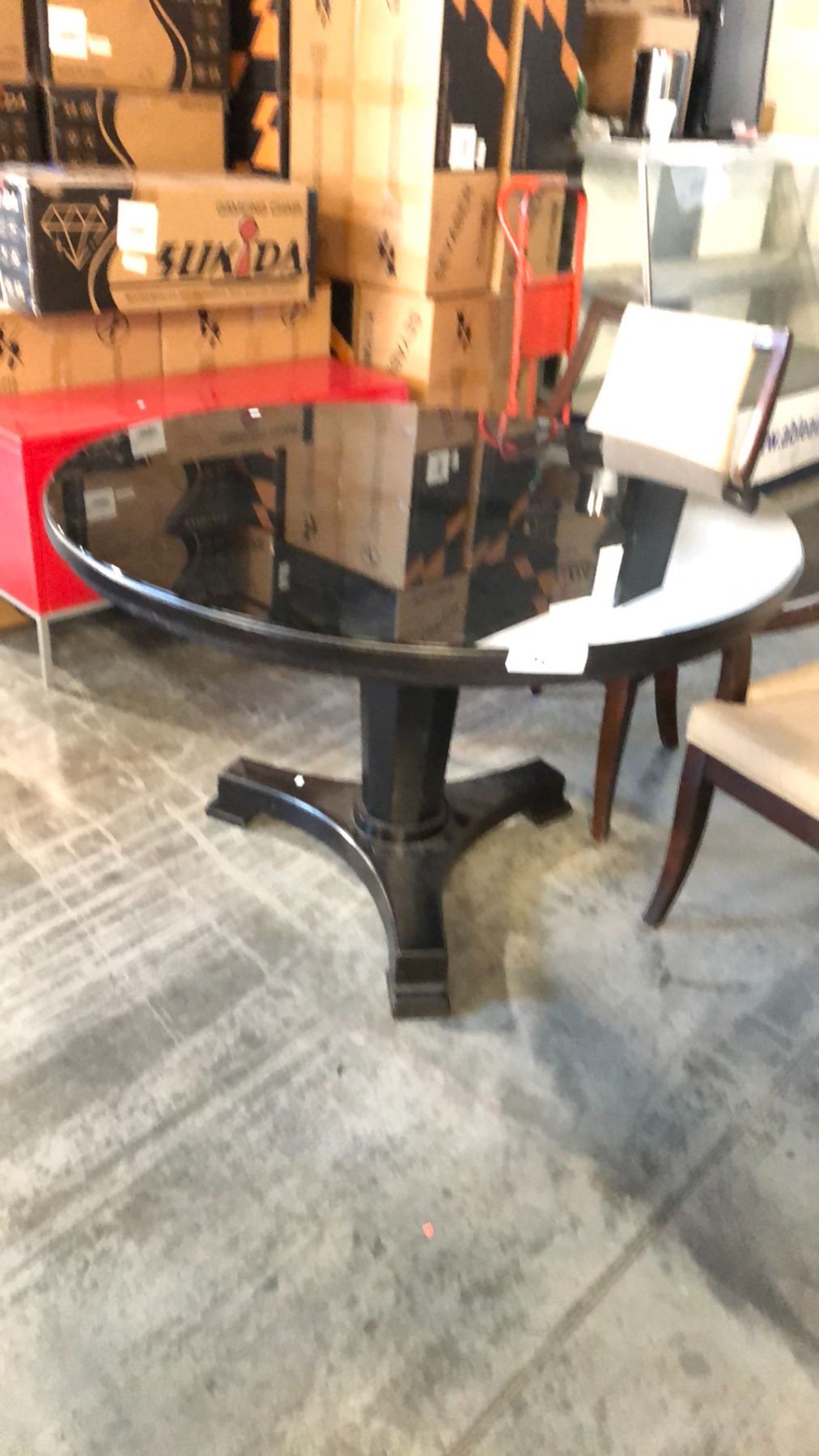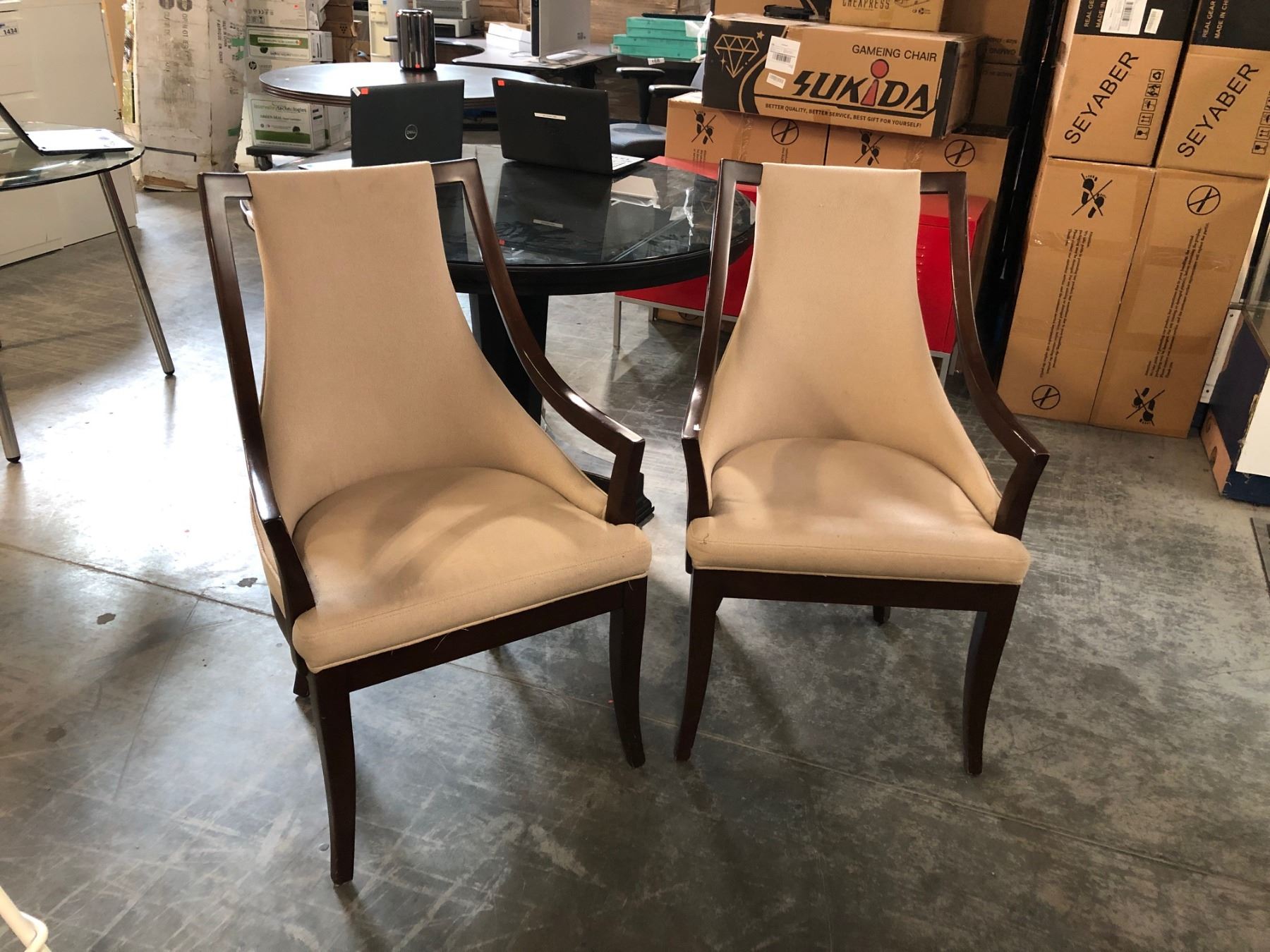 EBONY 48" ROUND TABLE COMES WITH 2 WALNUT AND BEIGE ARM CHAIRS
