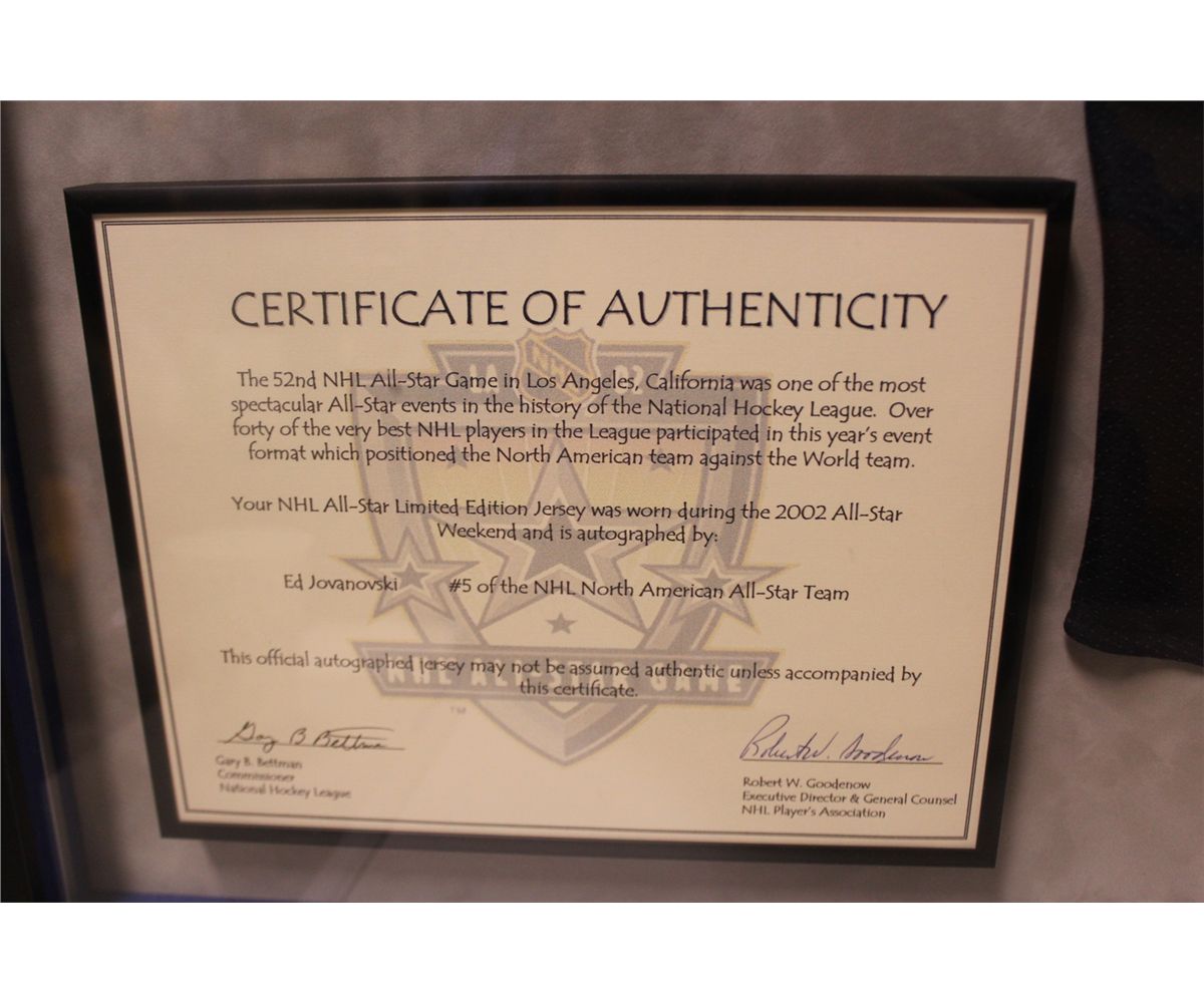 ED JOVANOVSKI AUTOGRAPHED AND CUSTOM FRAMED 2002 ALL-STAR GAME WORN JERSEY, WITH COA