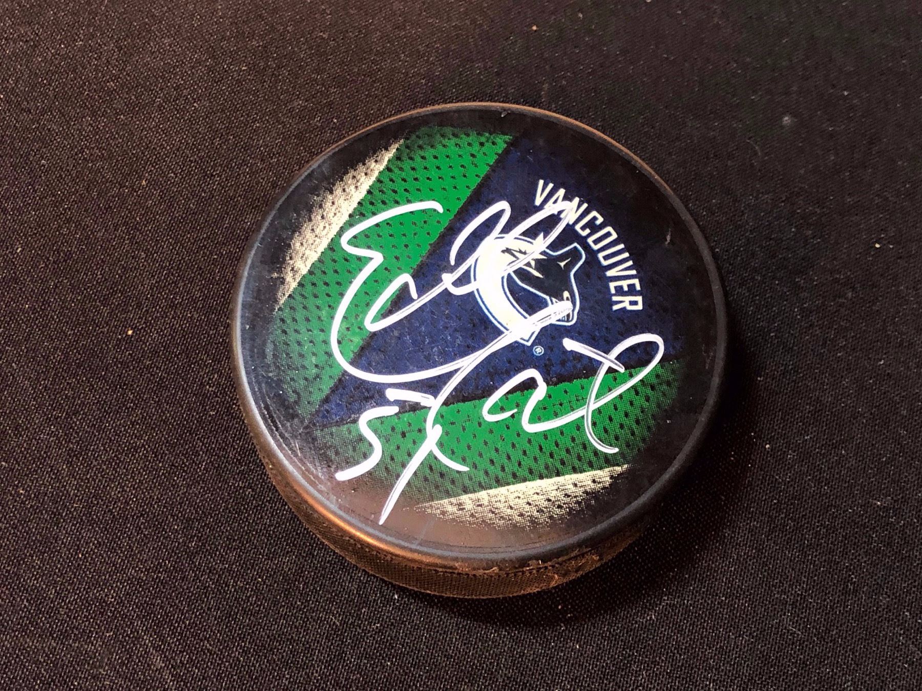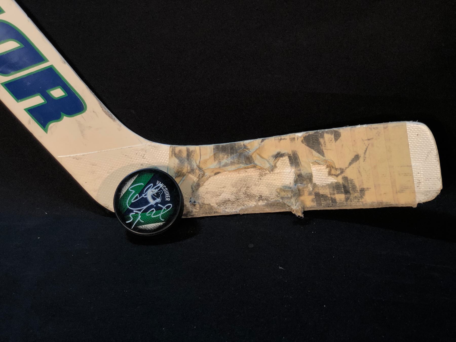 EDDIE LACK CANUCKS DEBUT GAME USED STICK, AND AUTOGRAPHED PUCK