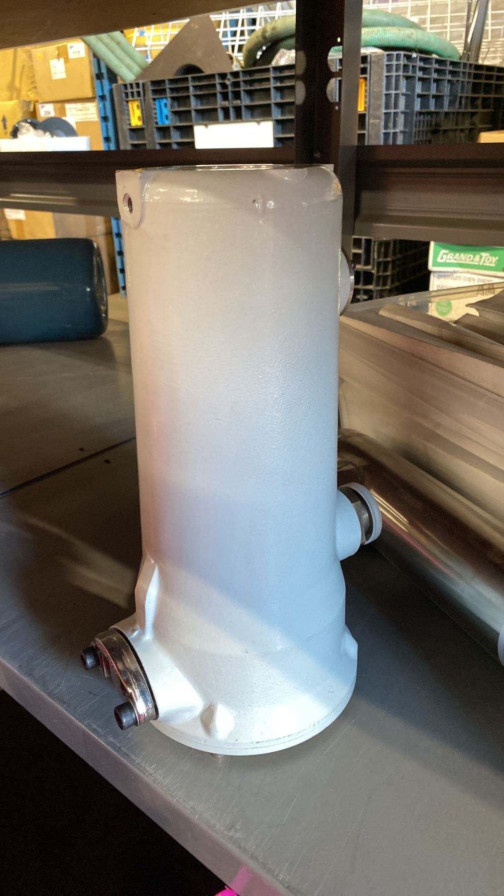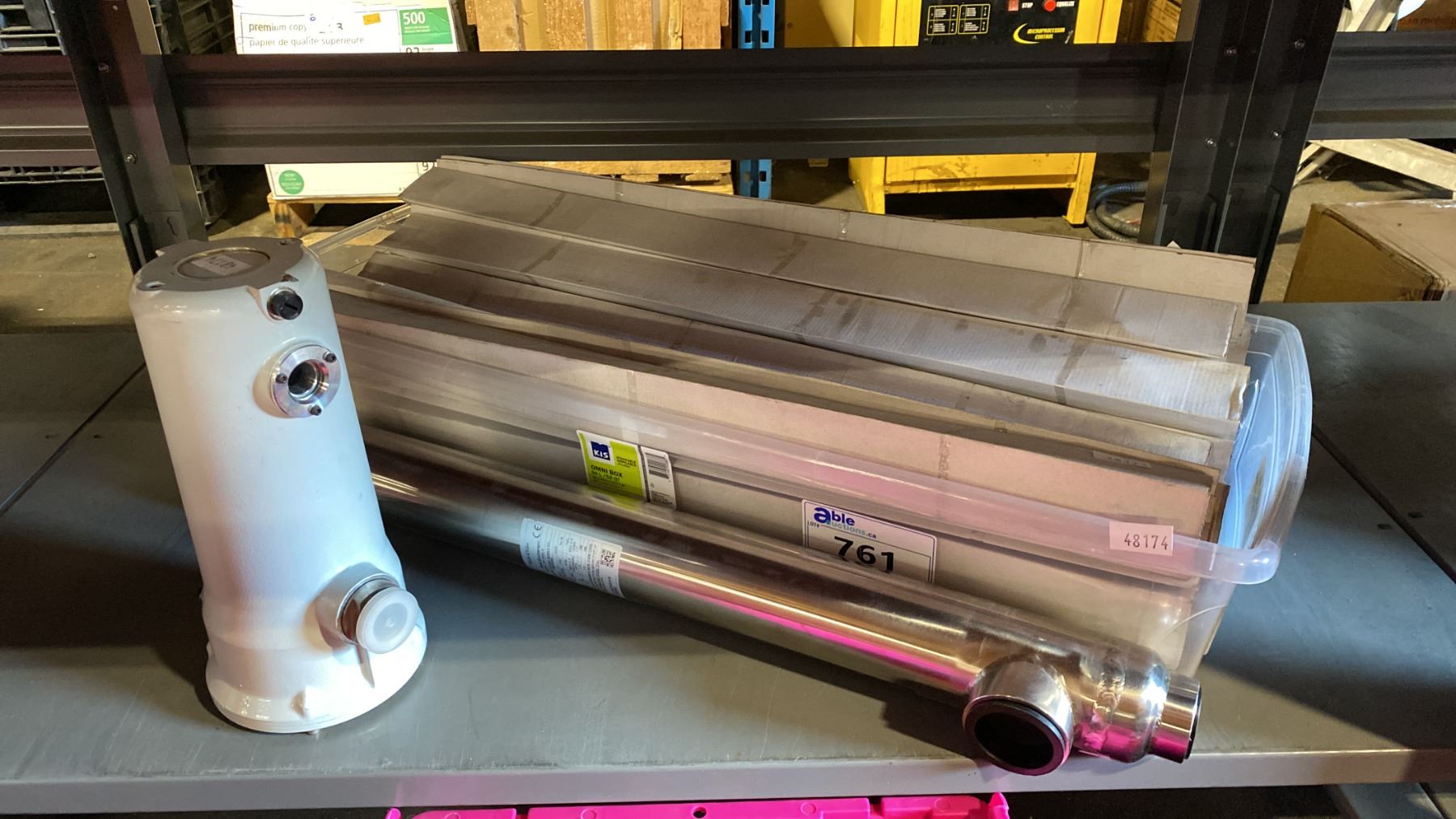 EDWARDS MF30 OUTLET MIST FILTER WITH BIN OF LABORATORY HEAT EXCHANGER SHELL & TUBES
