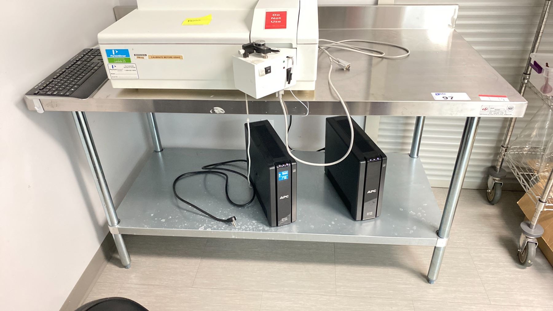 EFI STAINLESS STEEL 2 TIER WORK TABLE APPROX 31 X 60" WITH BACKSPLASH (CONTENTS NOT INCLUDED)