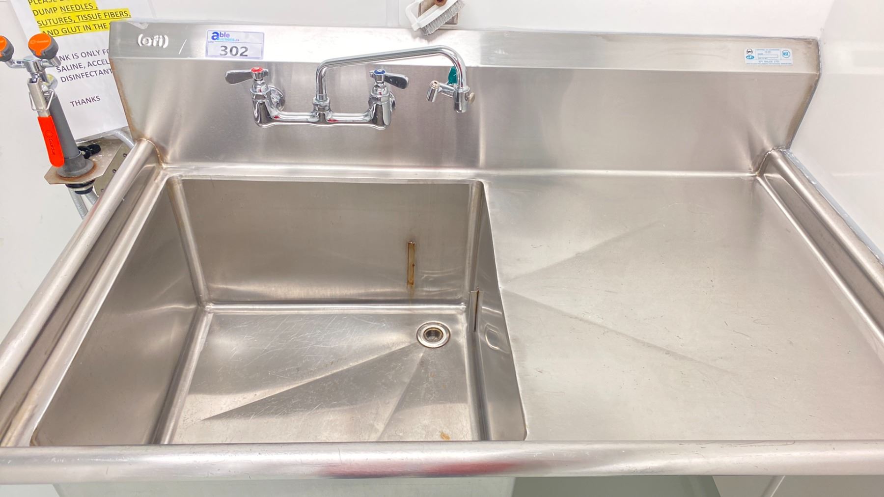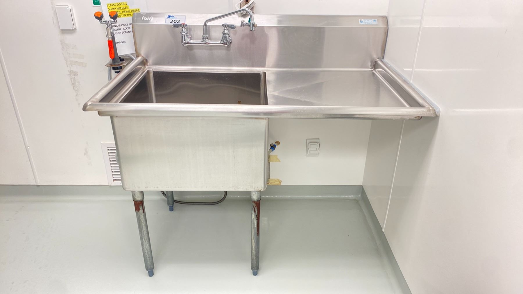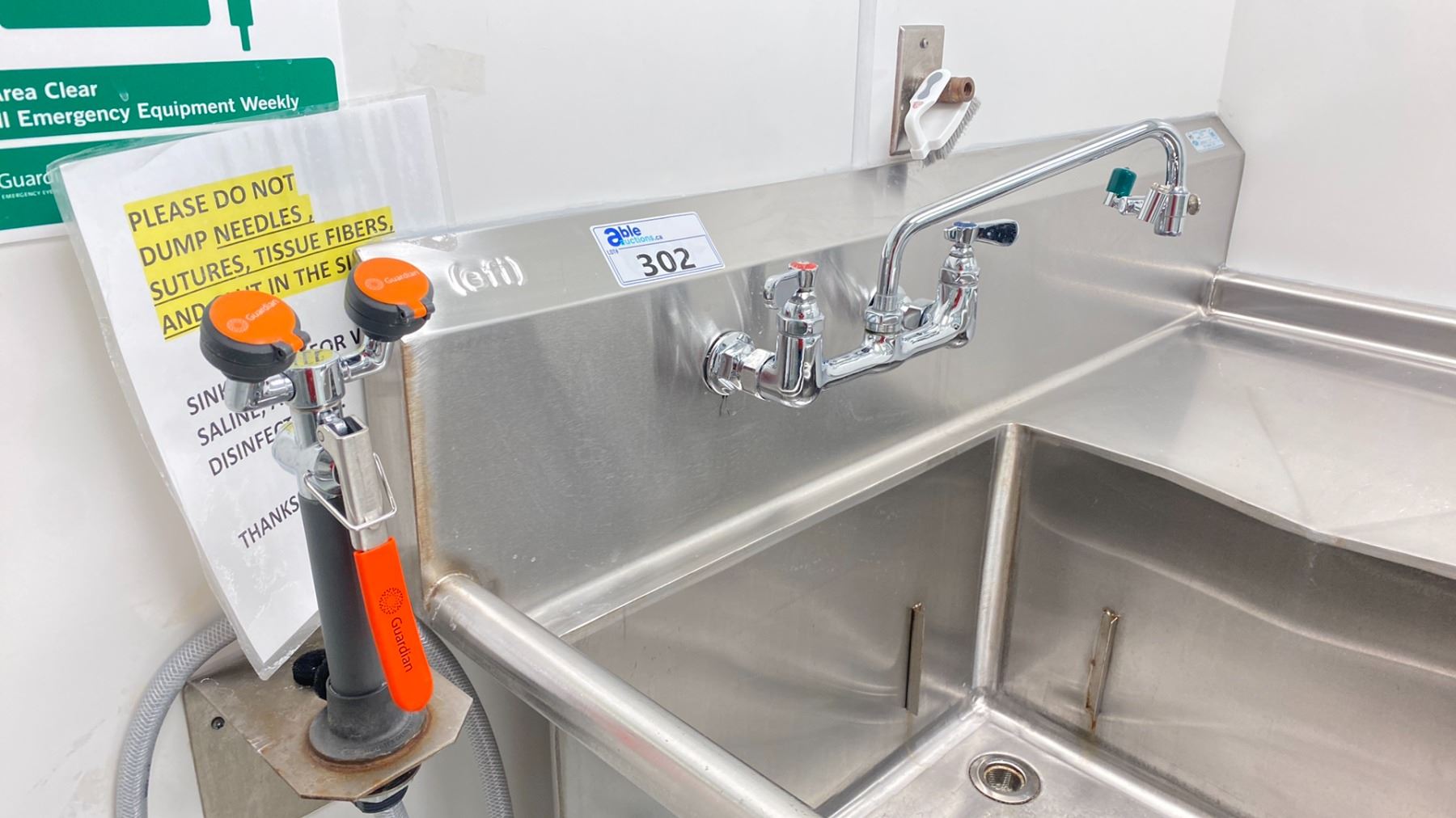EFI STAINLESS STEEL SINK WITH EYEWASH STATION APPROX 4 X 2.5 X 4' (WILL BE PROFESSIONALLY DISCONNECTED PRIOR TO AUCTION)