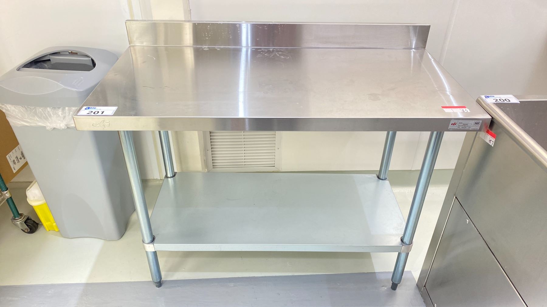 EFI STAINLESS STEEL WORK TABLE WITH BACKSPLASH APPROX 4' X 2' X 3'