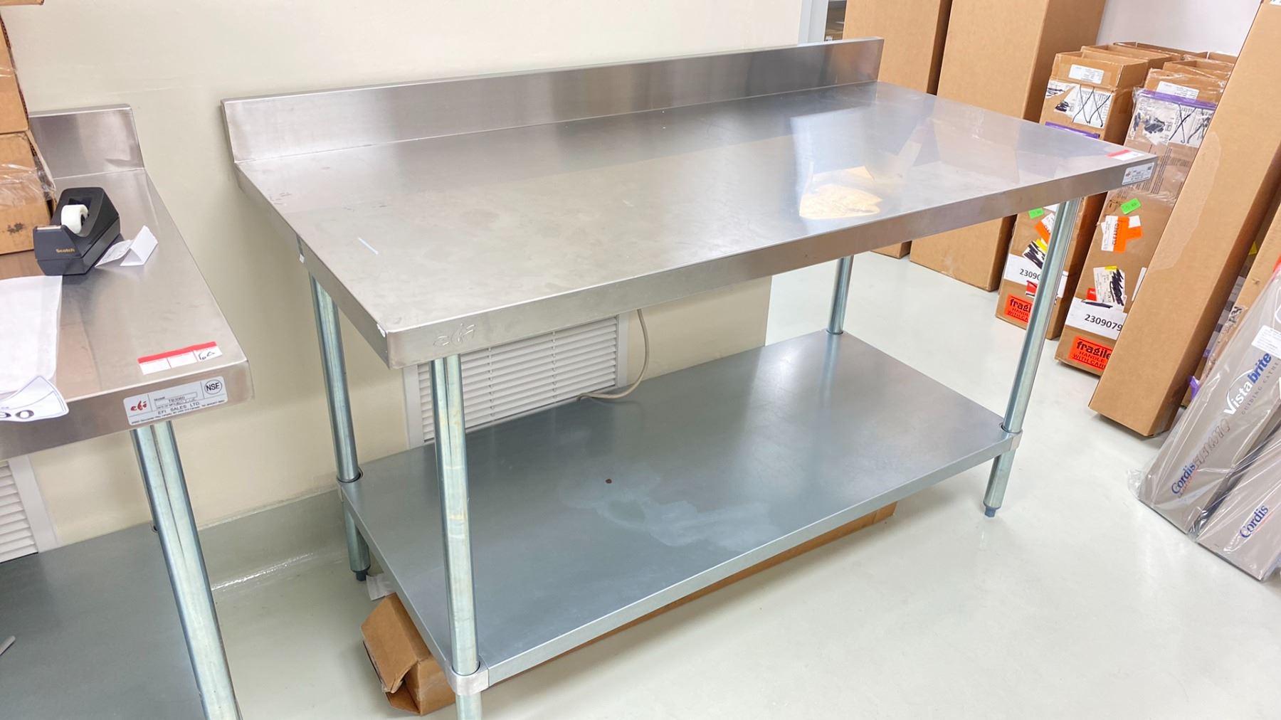 EFI STAINLESS STEEL WORK TABLE WITH BACKSPLASH APPROX 5 X 2.5 X 3'