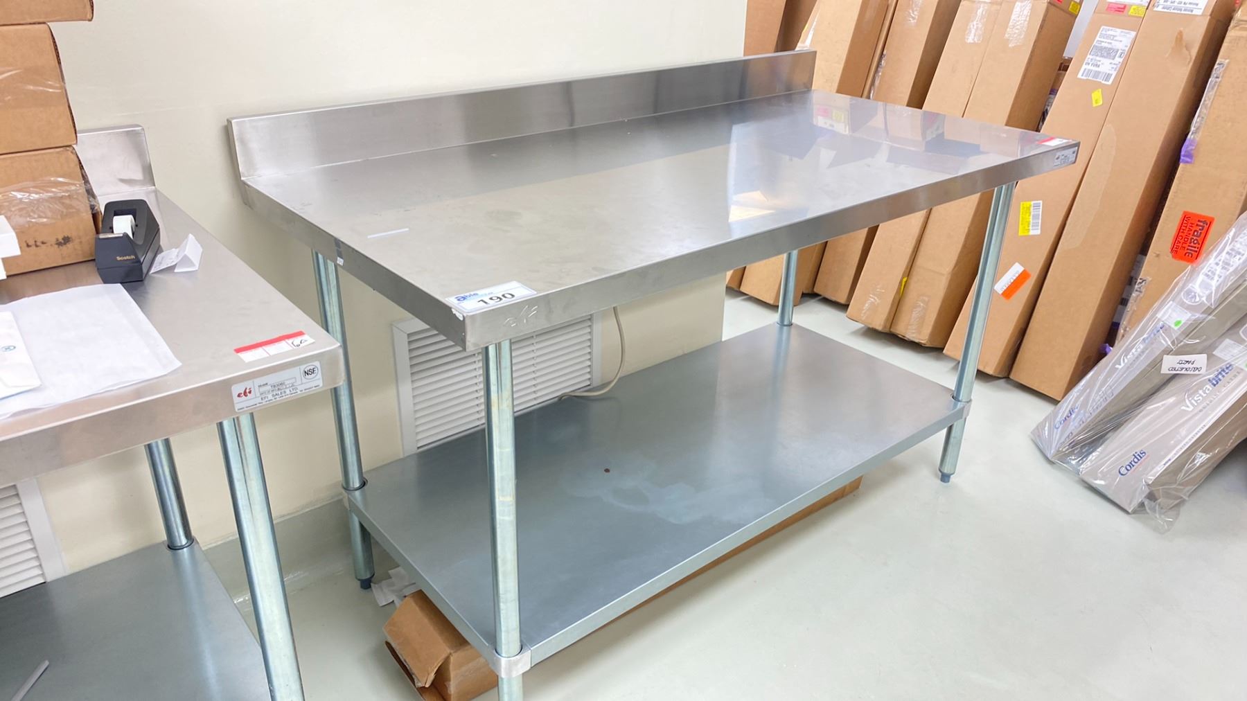 EFI STAINLESS STEEL WORK TABLE WITH BACKSPLASH APPROX 5 X 2.5 X 3'
