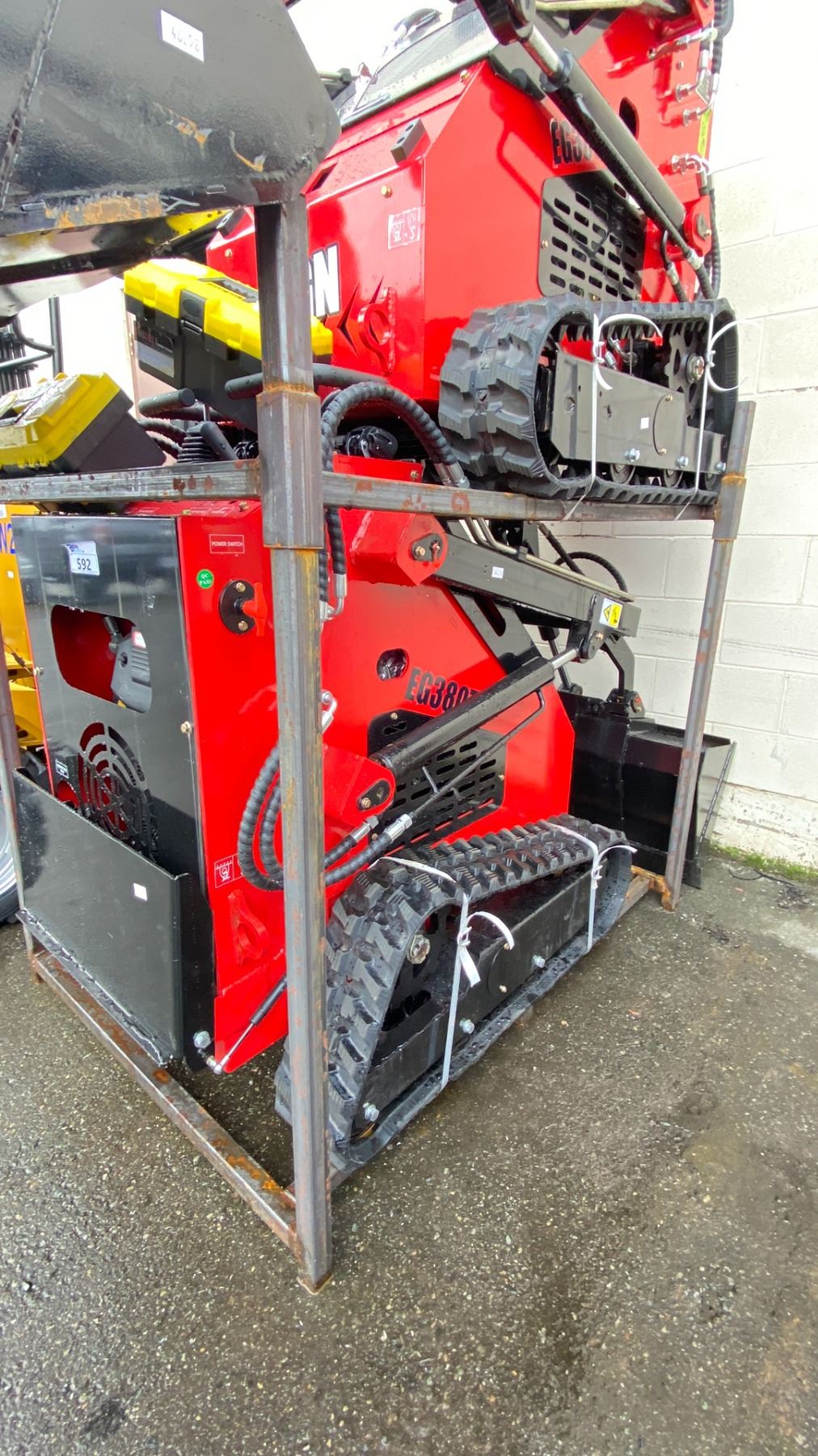 EG380T RED 16HP GAS POWERED RIDE ON RUBBER TRACK MINI SKID STEER WITH 0.15 M3 BUCKET CAPACITY, MINI TOOL KIT & KEYS *MEETS CANADIAN EMISSIONS CONTROL REGULATIONS*