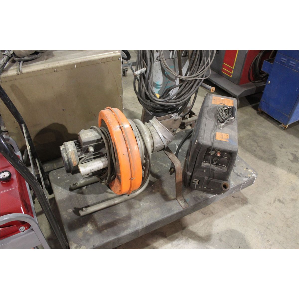 ELECTRIC AC EXHUAST FAN WITH HOBART HEFTY WELDER ON MOBILE CART