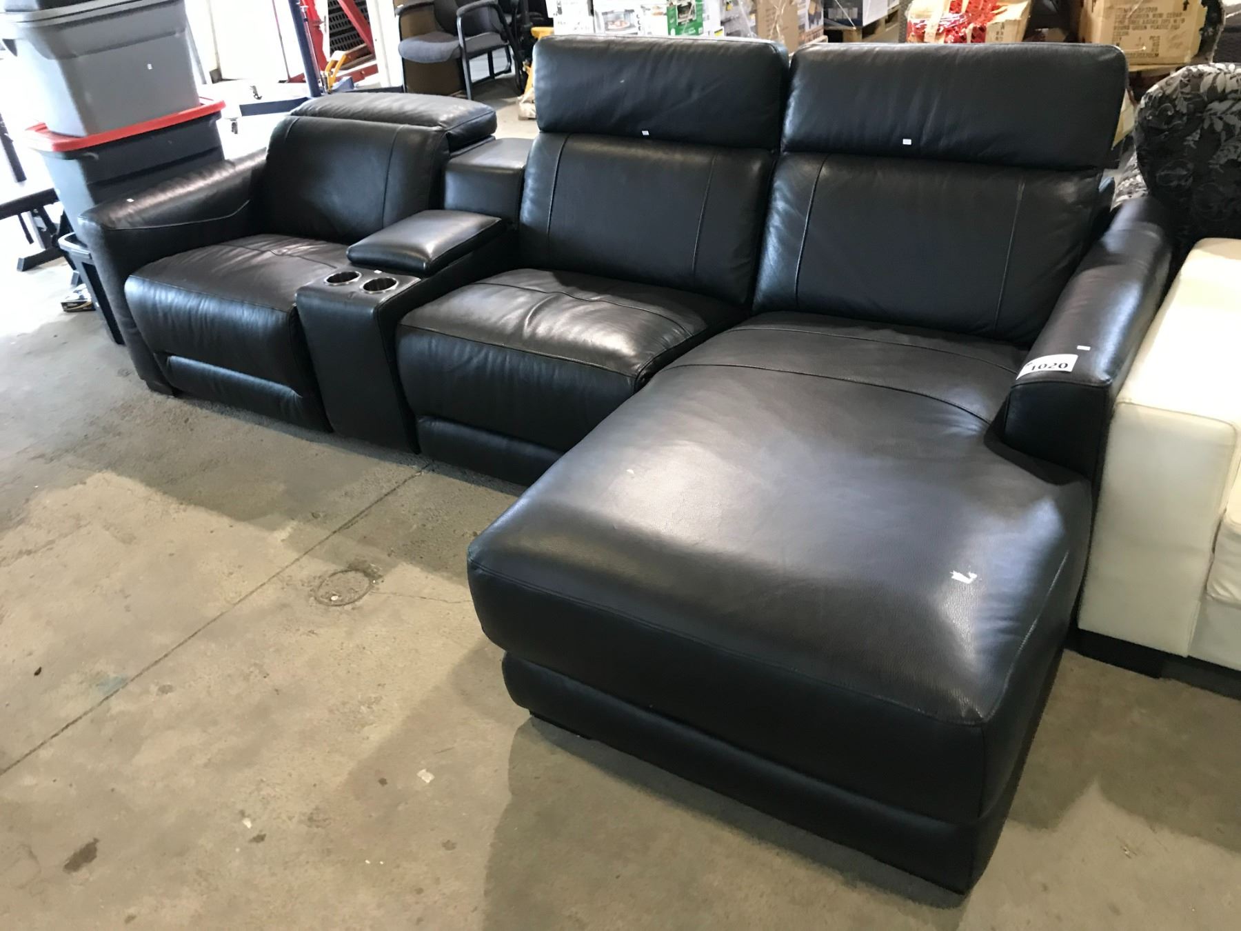 ELECTRIC RECLINING SECTIONAL WITH 2 OUTLETS AND 2 USB PORTS IN STORAGE COMPARTMENT AND ADJUSTABLE HEADRESTS