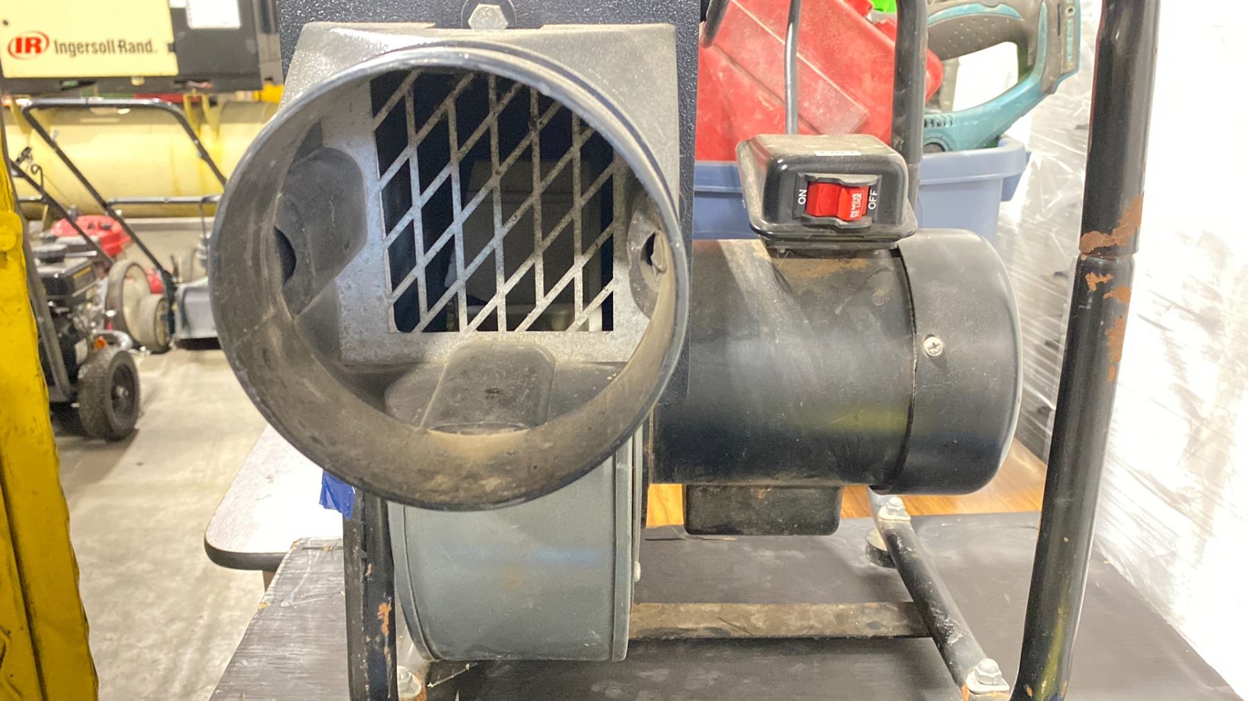 ELECTRIC VINYL-VAC BLOWER FAN ON METAL INDUSTRIAL PEDESTAL STAND