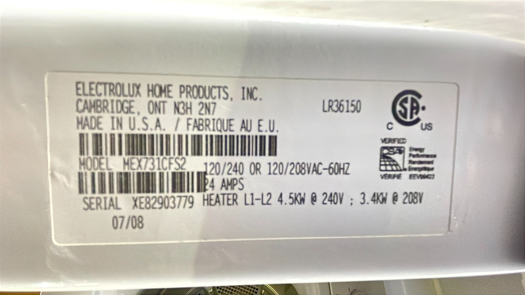 ELECTROLUX 27"W STACKING CLOTHES WASHER & DRYER