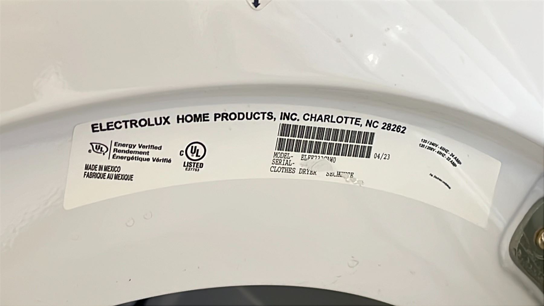 ELECTROLUX FRONT LOAD DRYER