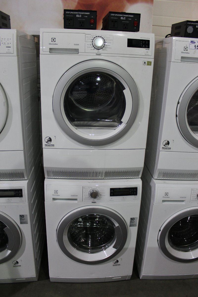 ELECTROLUX STEAM  SYSTEM ECO CARE  STACKER WHITE WASHER AND DRYER SET - EUROPEAN WIRED COMES COMPLETEWITH TWO STEP UP AND DOWN  POWER TRANSFORMERS TO CONVERT TO NORTH AMERICAN POWER SORCE