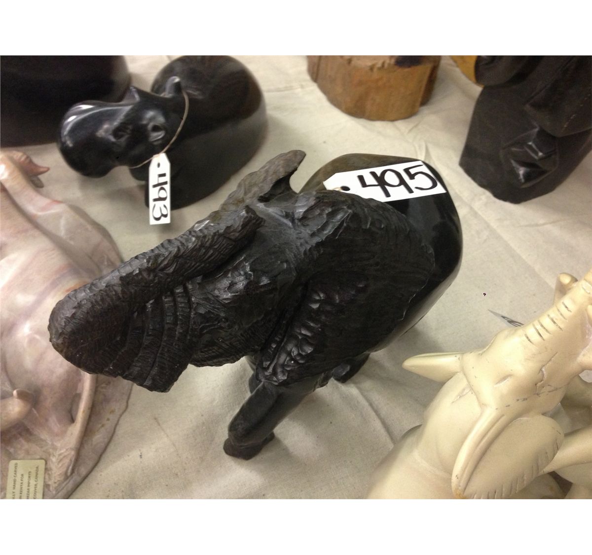 ELEPHANT, SPRING STONE HAND CARVED 11" TALL