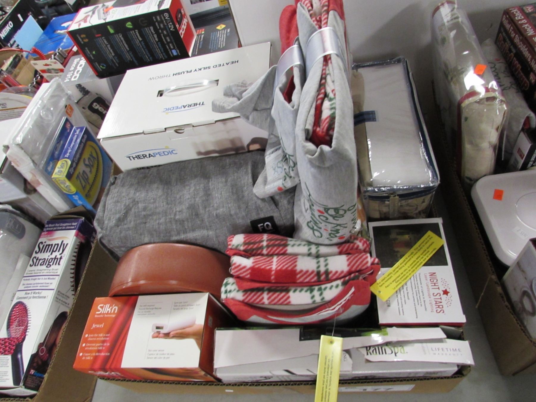 ELLEN DEGENERES XMAS PJS, THERAPEDIC HEATED SILKY PLUSH THROW, SILK'N JEWEL DEVICE, SHOWER HEAD, KENNETH COLE DUVET COVER, ETC