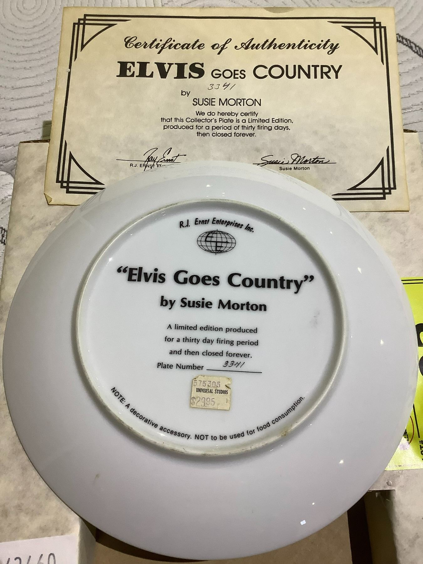 "ELVIS GOES COUNTRY" BY SUSIE MORTON LIMITED EDITION COLLECTIBLE PLATE WITH COA