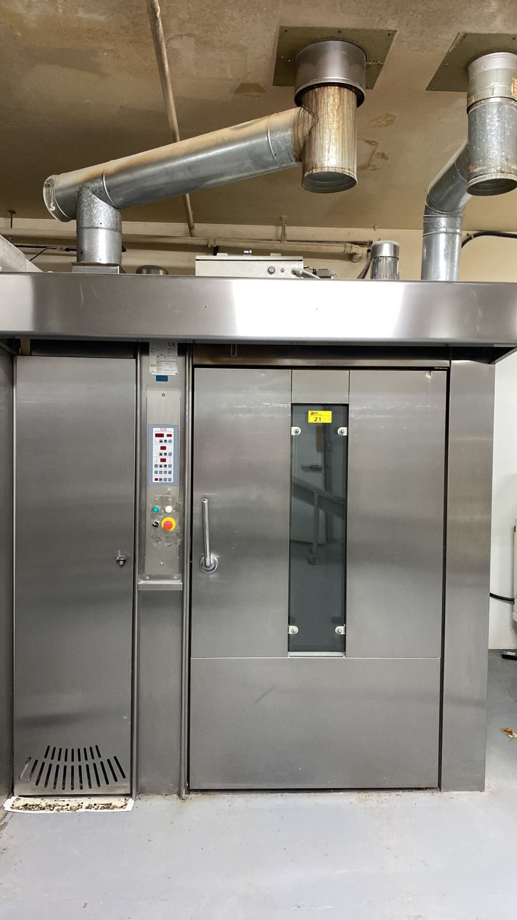 EM BAKERY ROLLER 88 STAINLESS STEEL SINGLE 40 TRAY DOUBLE SIDE RACK COMMERCIAL ROTARY BAKING OVEN WITH BOILER SYSTEM & VENTING *MUST HAVE PROPER TOOLS / TECHNICIAN TO DISMANTLE*
