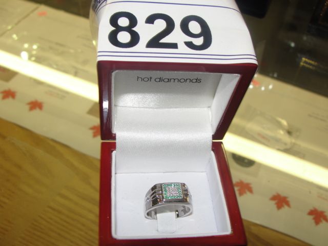 EMERALD AND WHITE TOPAZ .925 SILVER RING
