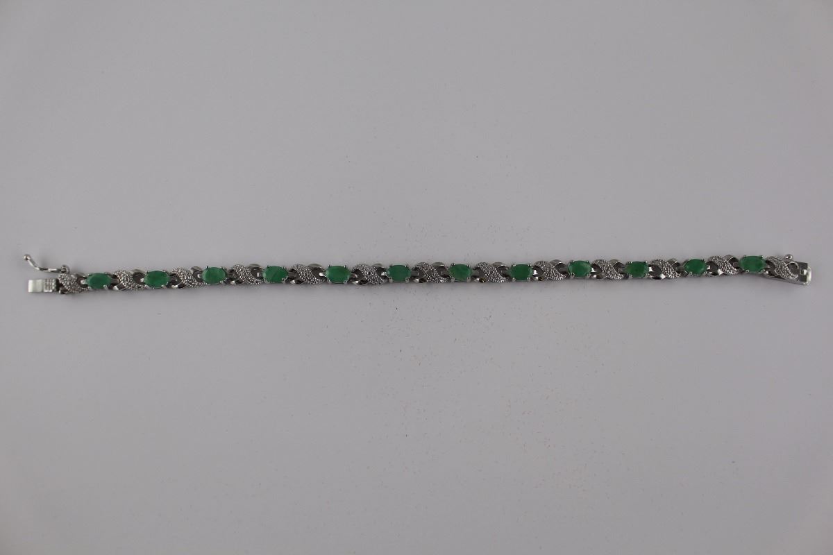 EMERALD & DIAMOND TENNIS BRACELET, FIGURE 8 LINKS, 12 OVAL EMERALDS, $500 CERTIFICATE