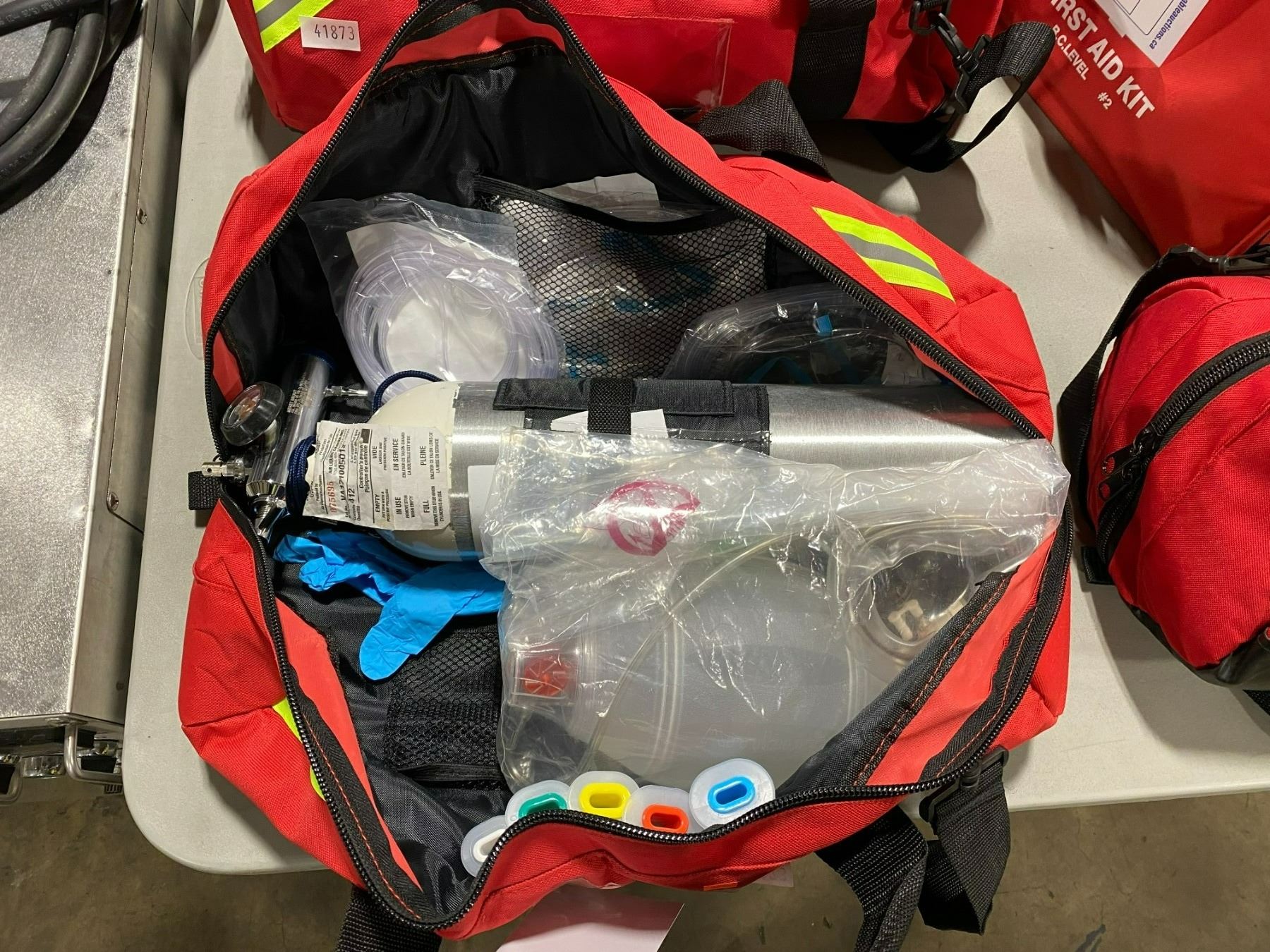 EMERGENCY FIRST-AID PORTABLE OXYGEN TANK WITH BAG VALVE MASK, OXYGEN MASK, ORAL AIRWAY INSERTS AND CARRY BAG