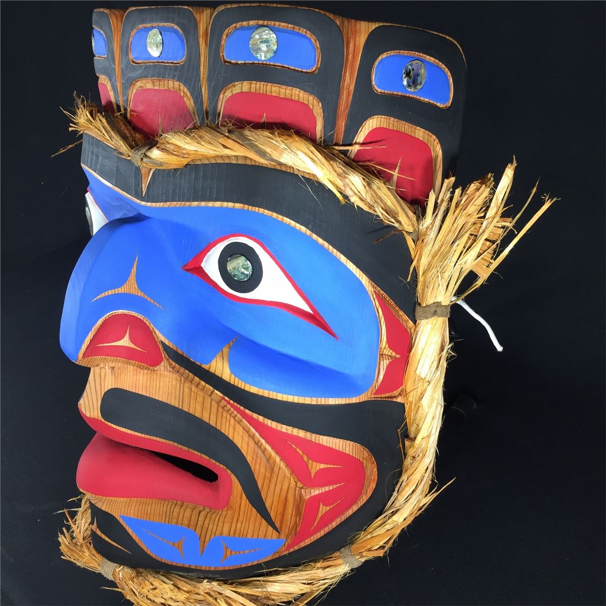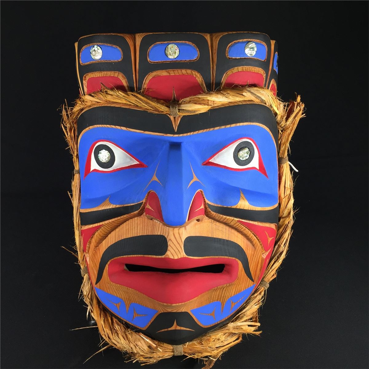 EMIL THIBERT, SALTEAUX NATION, KOMOKWA KING OF THE SEA MASK WITH ABALONE ACCENT 20.5" H X 15" W X 10" D