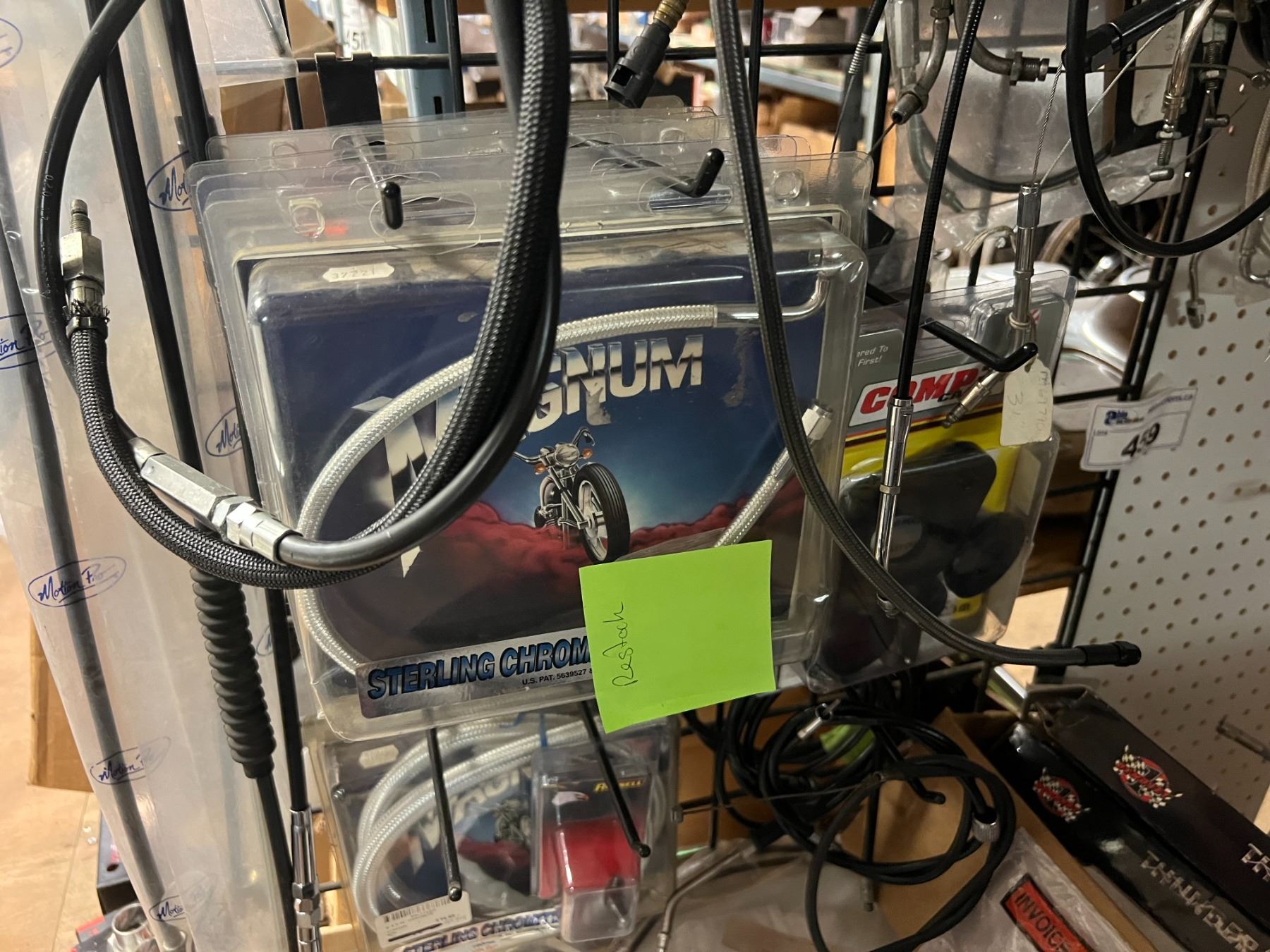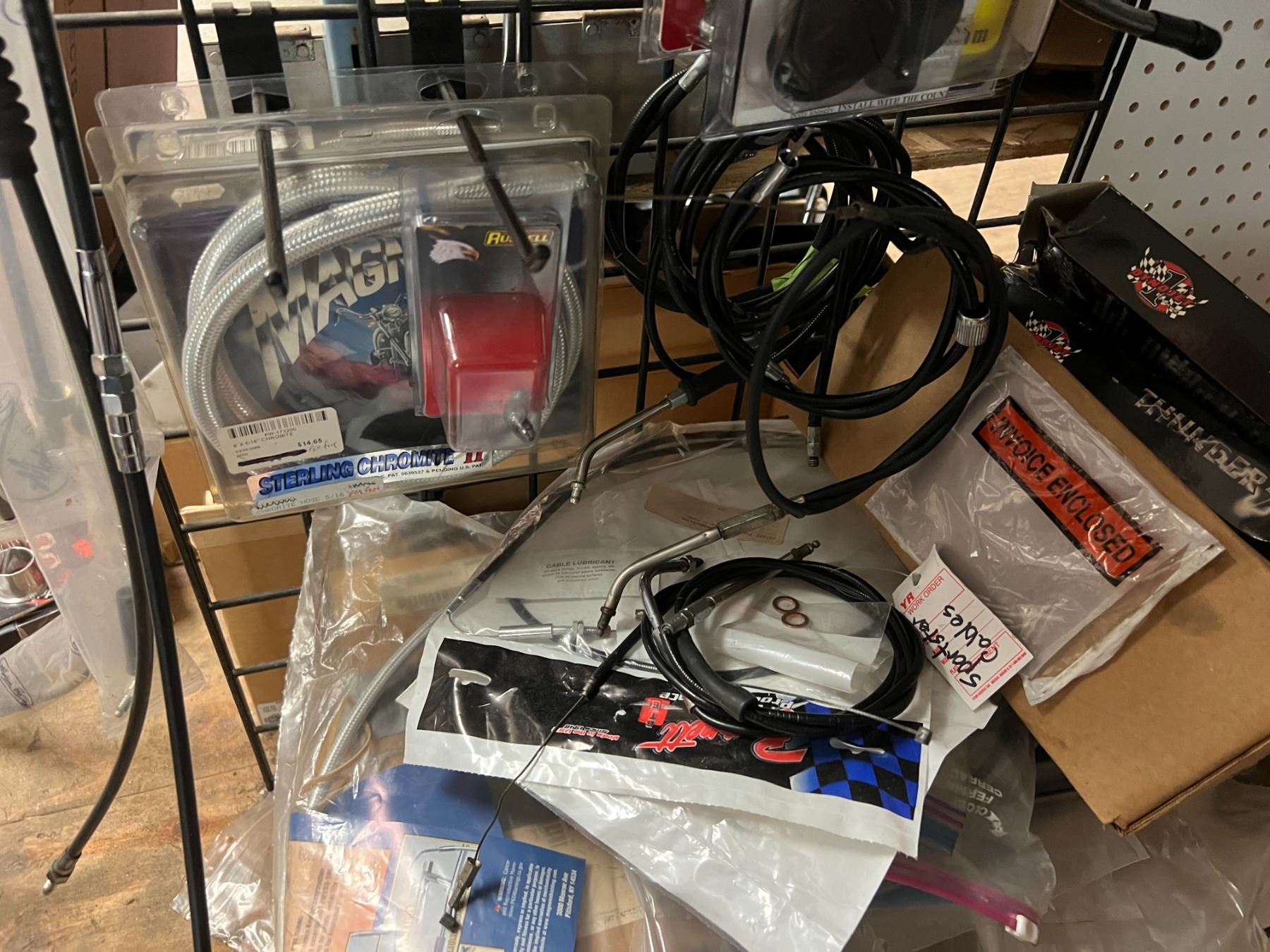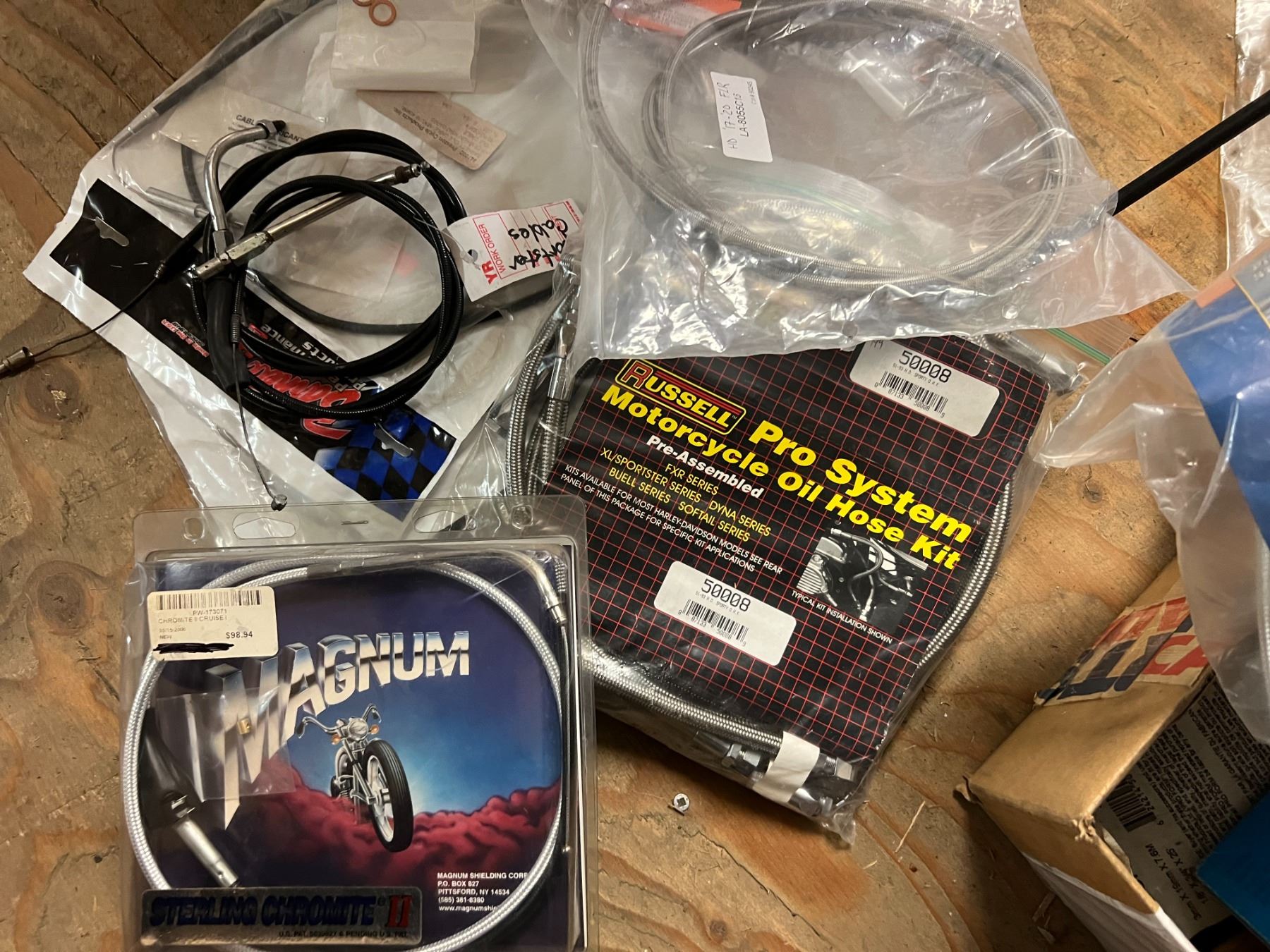 END LOT HARLEY DAVIDSON BRAKE LINES, CABLES, OIL HOSE LINE KITS, CHAIN TENSIONER, CARB KITS, ETC