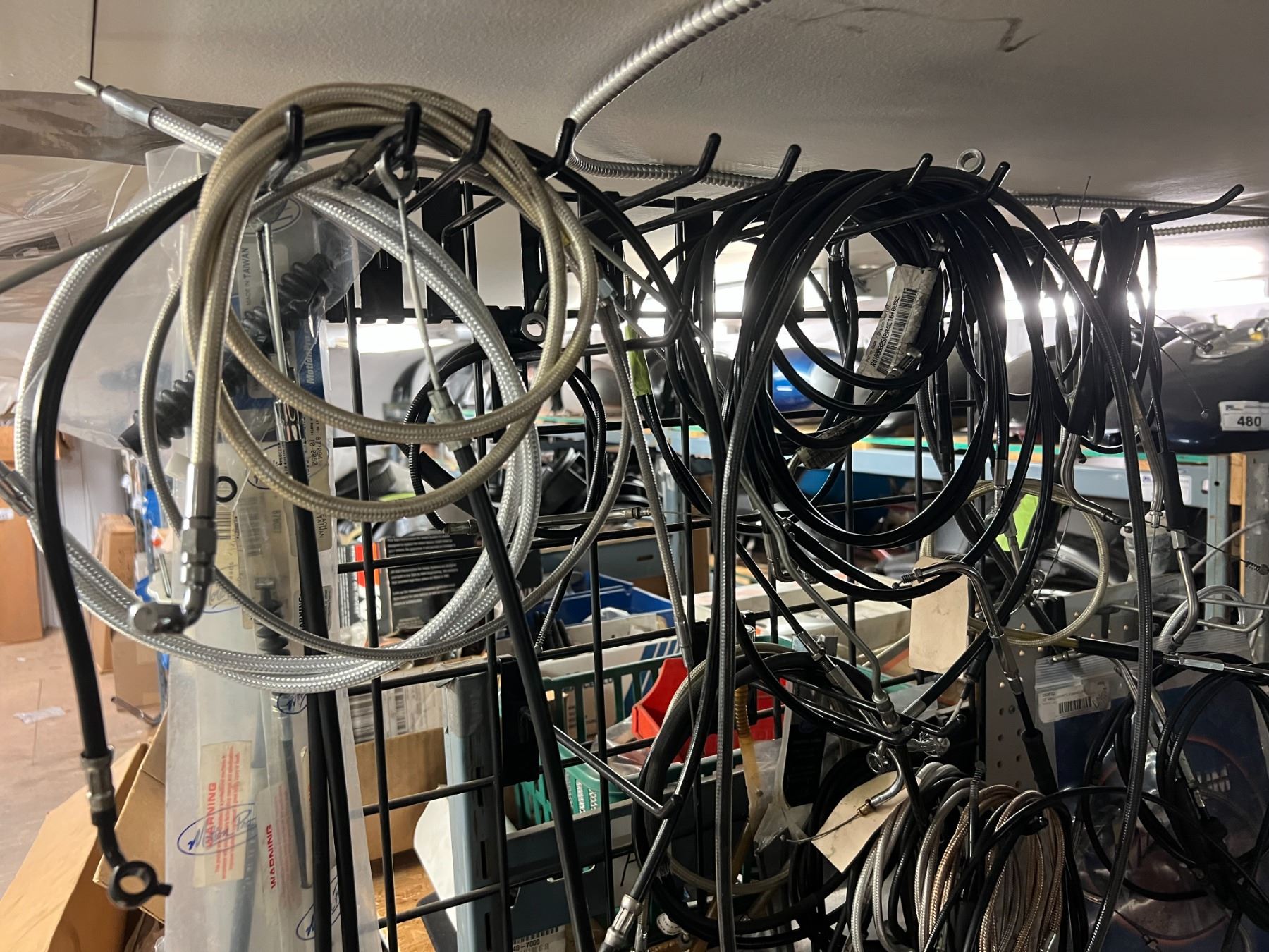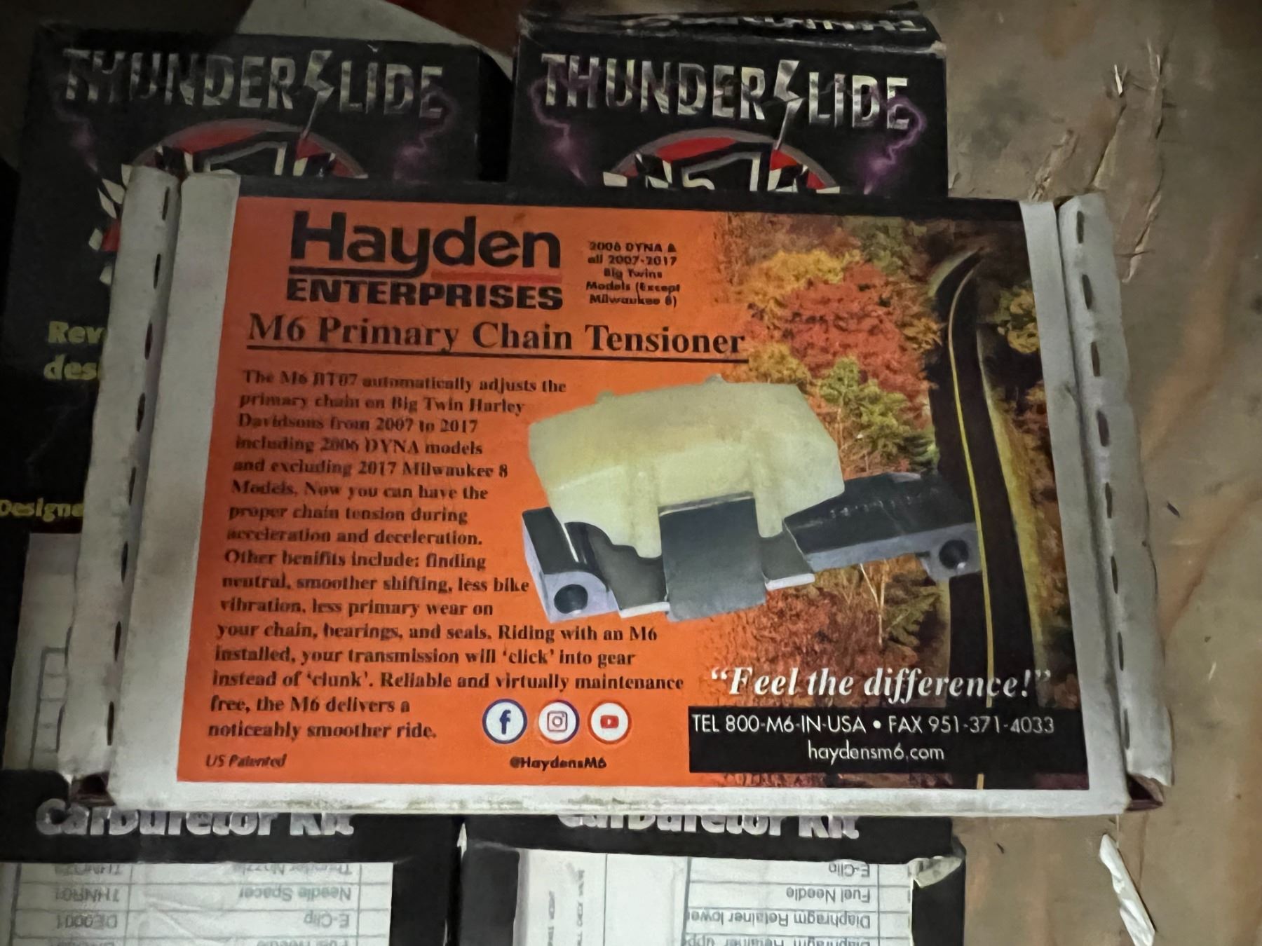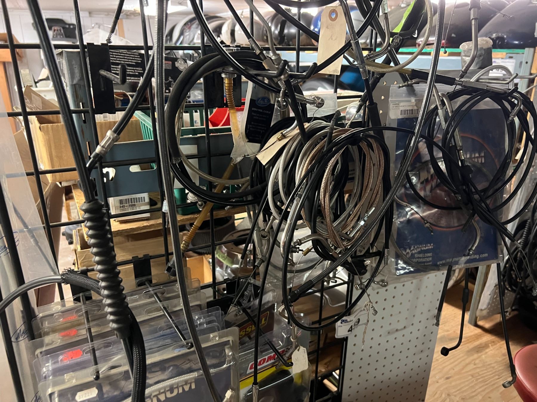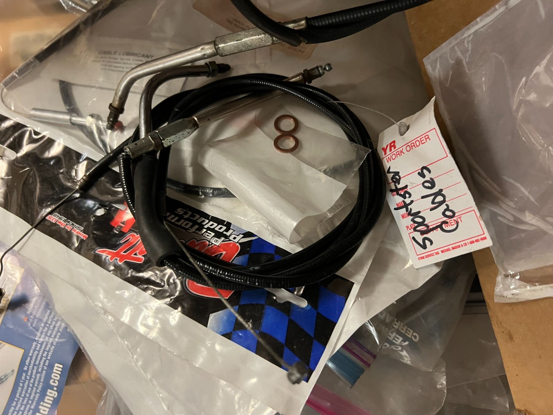 END LOT HARLEY DAVIDSON BRAKE LINES, CABLES, OIL HOSE LINE KITS, CHAIN TENSIONER, CARB KITS, ETC