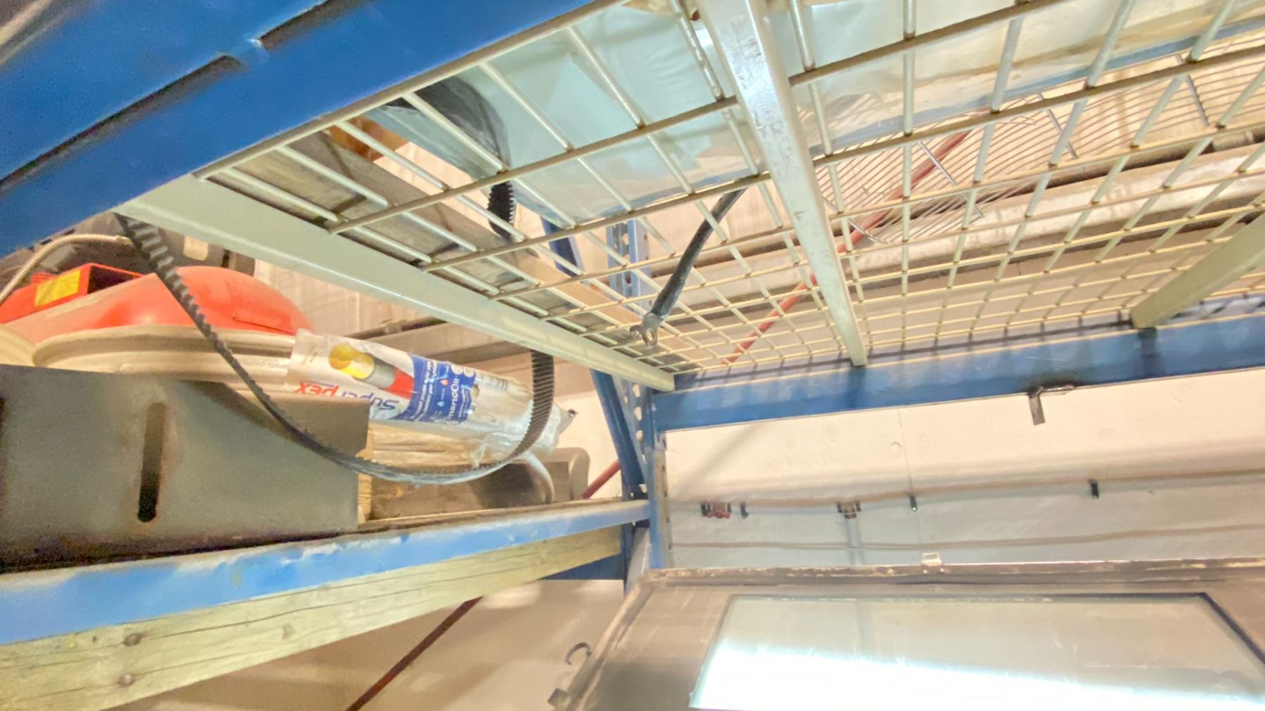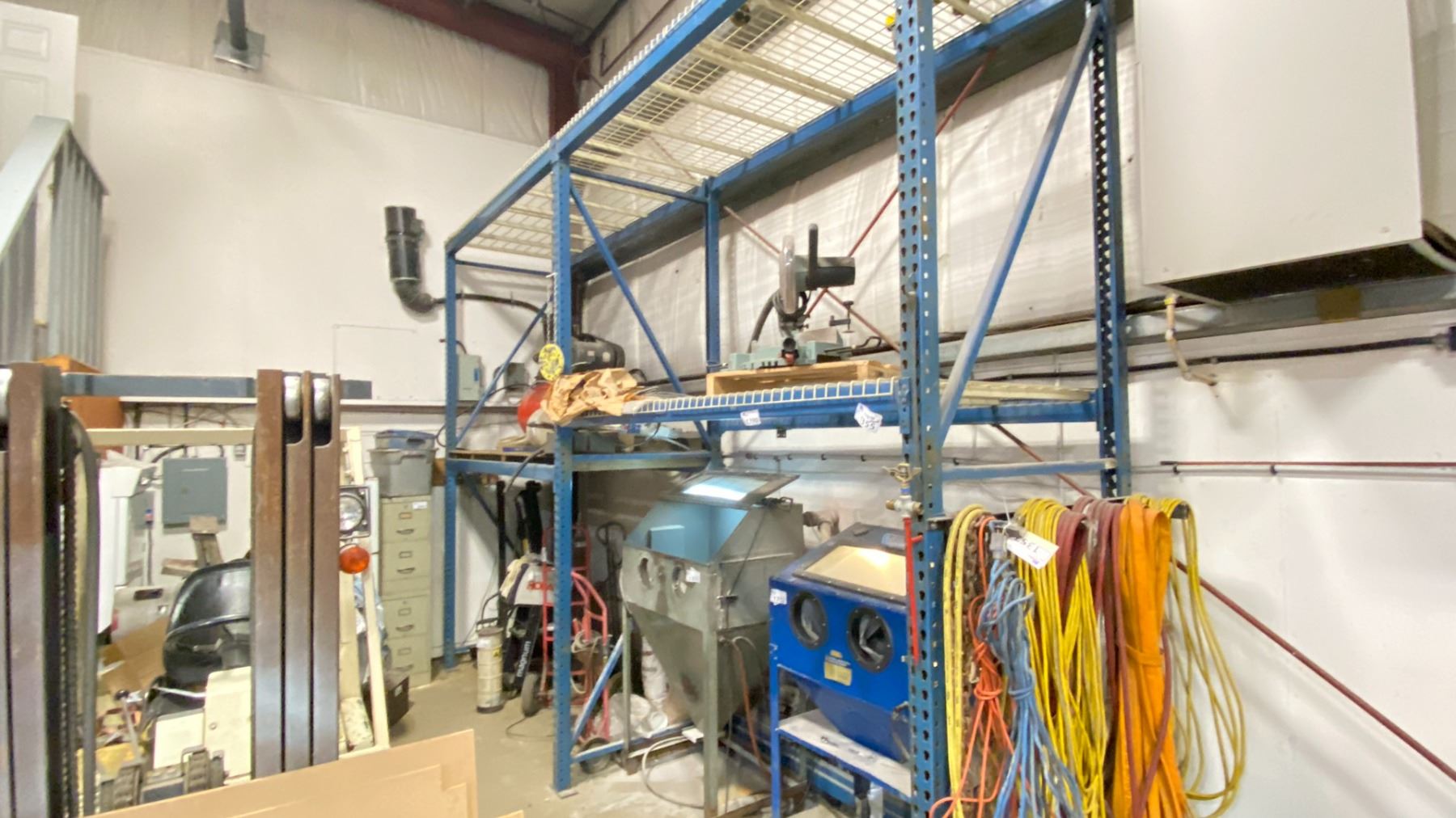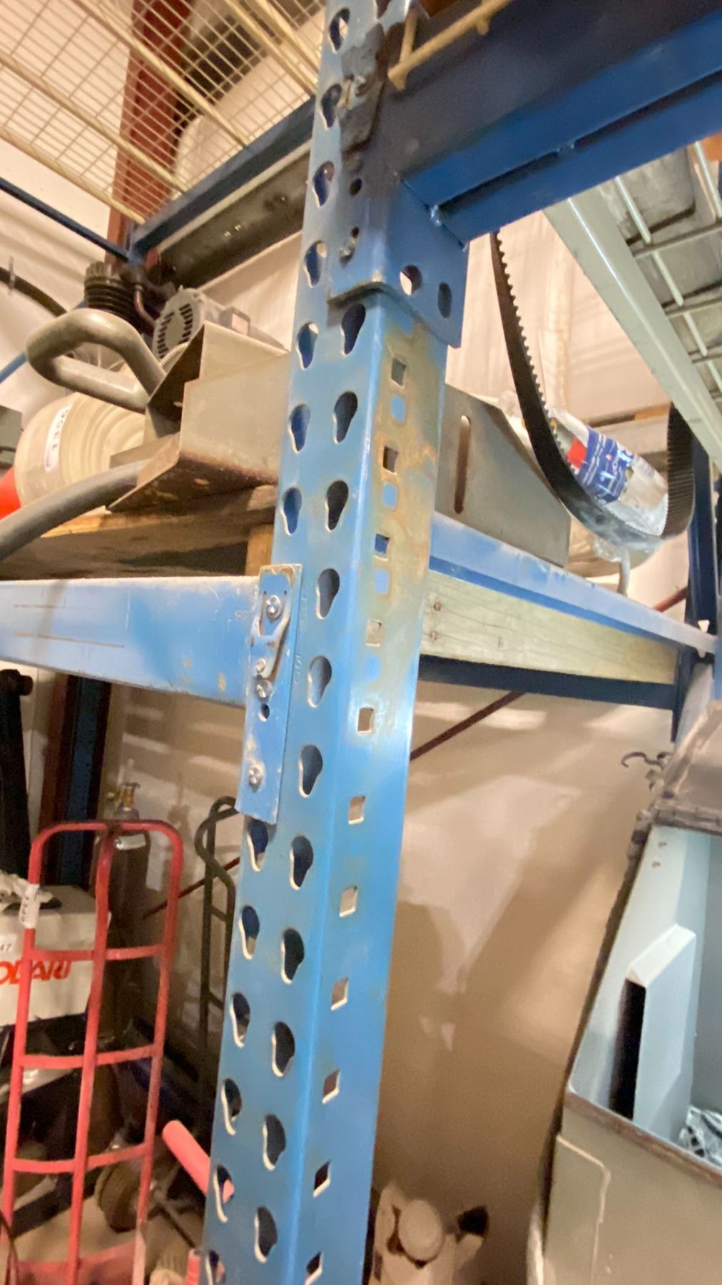 END OF DAY 2 SECTIONS METAL RACKING. 8'X44"X12'H. 3 UPRIGHTS, 8 BEAMS, WIRE DECKING MUST BE LAST DAY PICKUP