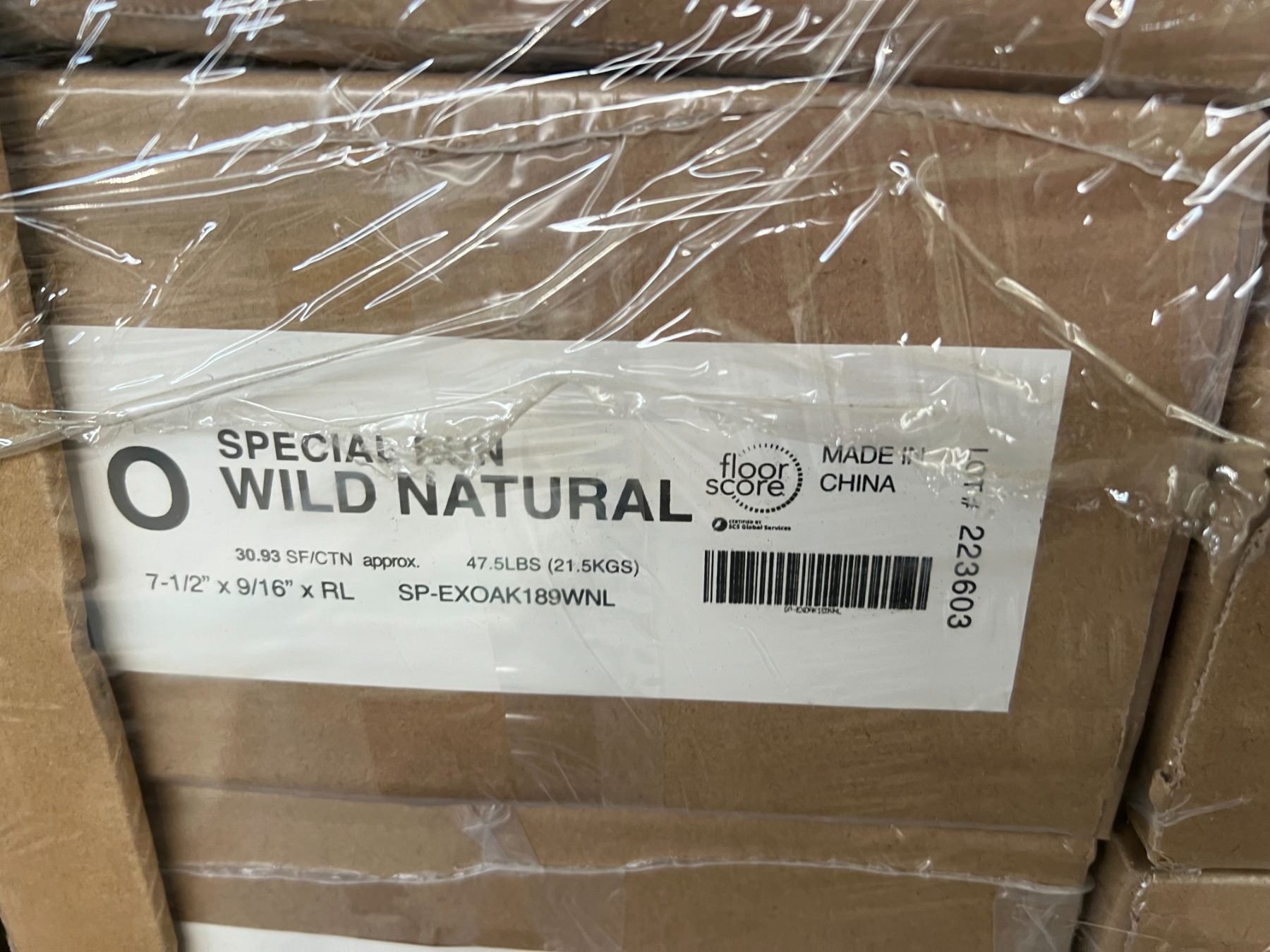 ENGINEERED HARDWOOD FLOORING "WILD NATURAL" 7-1/2" X 9/16" X RL X 30.93 SQ FT X 45 BOXES - TOTAL COVERAGE APPROX 1391 SQ FT - TOTAL WEIGHT 2137 LBS