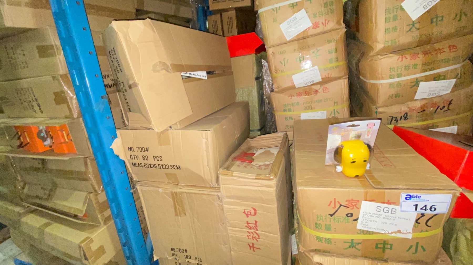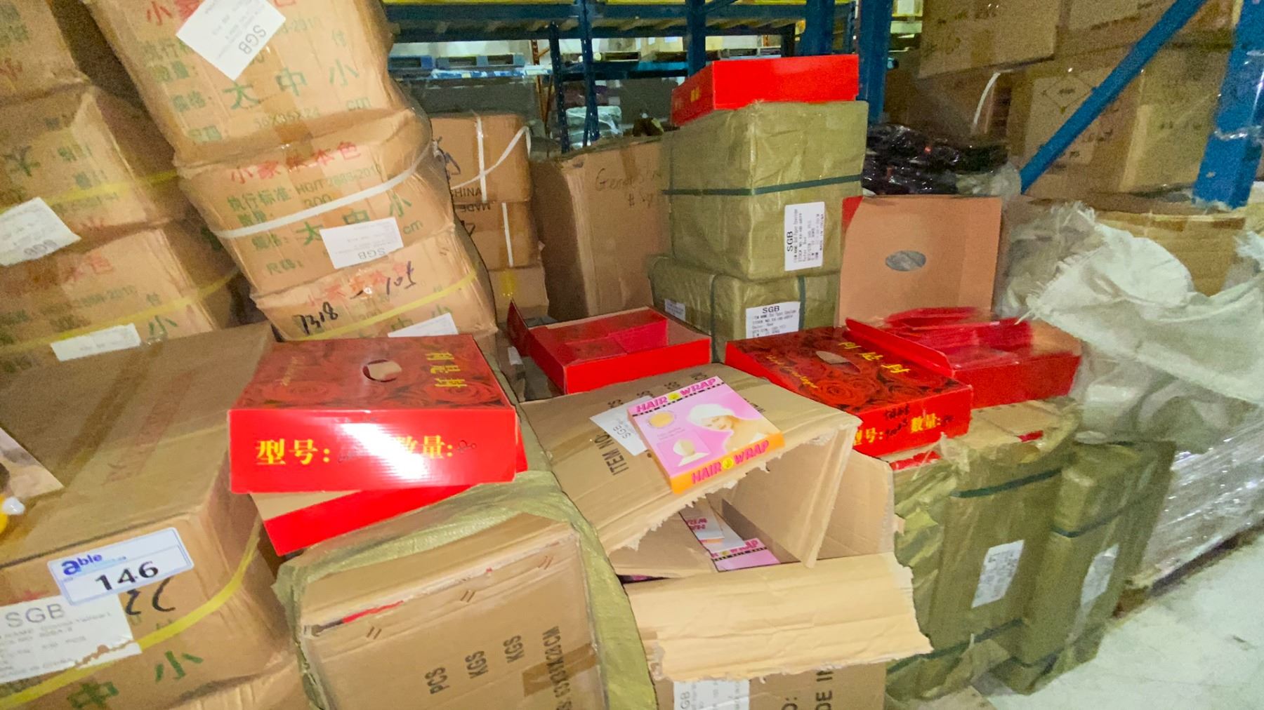 ENTIRE BAY OF RED GIFT ENVELOPES, KIDS TOY TOOTHPASTE HOLDERS, HAIR WRAP TOWELS, BACKPACKS, GLOVES,