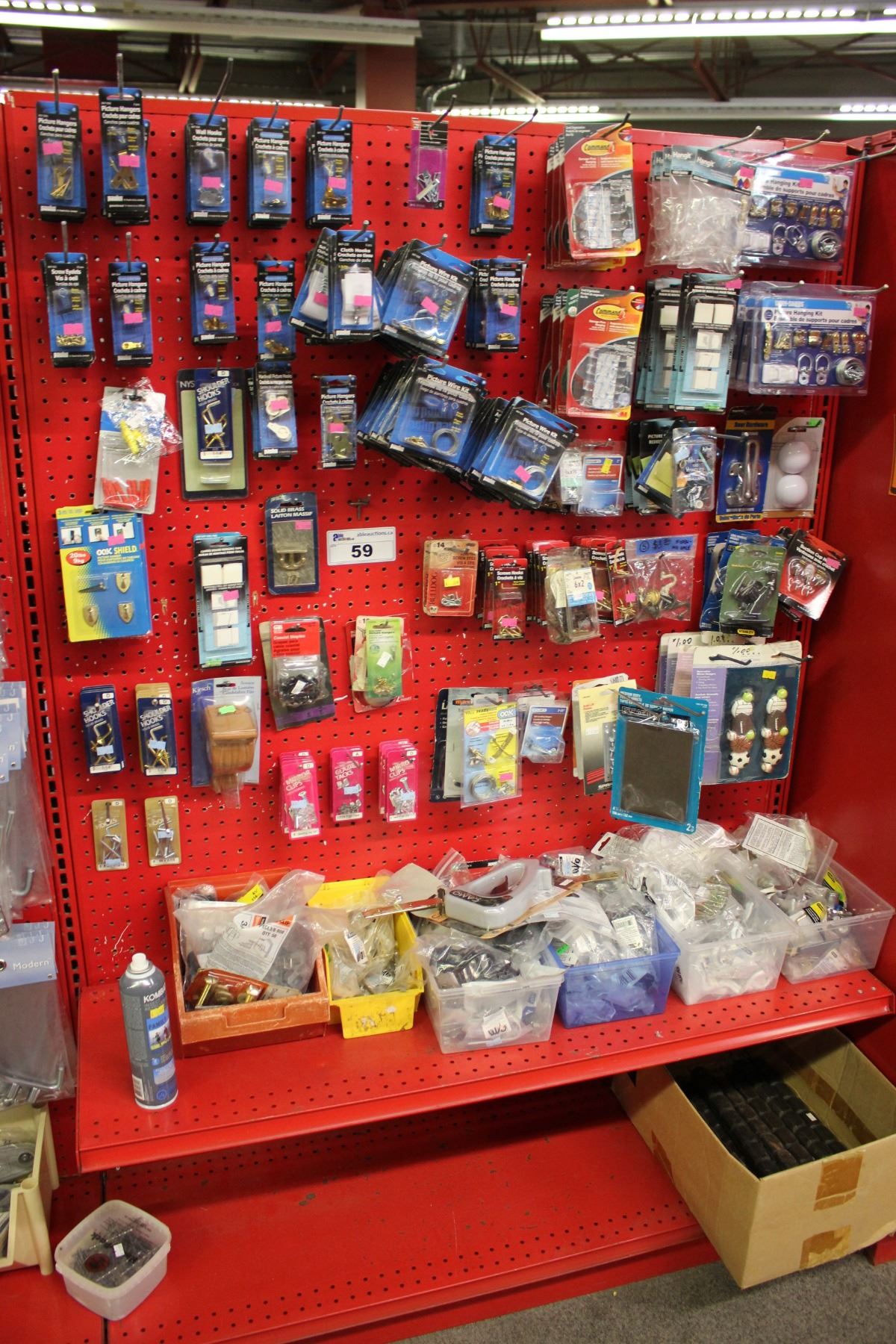 ENTIRE SHELF OF ASSORTED PICTURE HANGING, HARDWARE, AND MORE