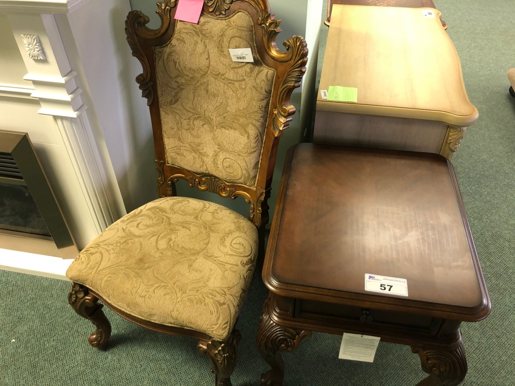 ENTRANCE SET INC. SIDE TABLE AND WOOD FRAME CHAIR.