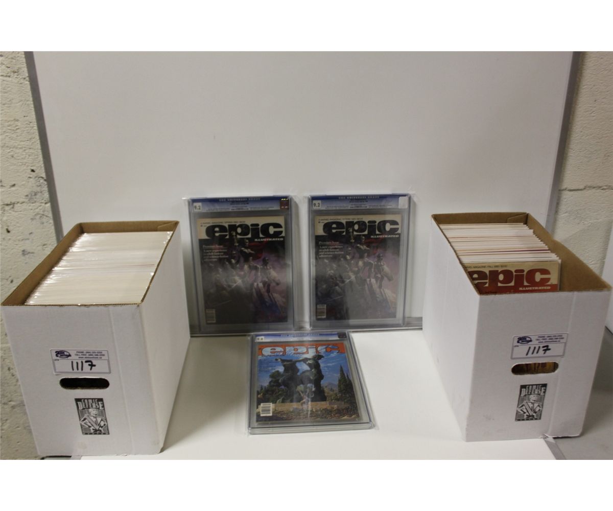EPIC ILLUSTRATED (MARVEL) NEAR COMPLETE RUN & DUPLICATES IN 2 MAGAZINE BOXES.  +3 CGC COPIES.  MIXED GRADES, MANY HIGHER INCLUDES 6X#1, 2 OF THEM CGC 9.2 (NM-) OFF-WHITE TO WHITE (1980) + #9 CGC 9.8 (NM/MINT) WHITE PAGES (12/81) * HIGHEST GRADED COPY ON THE PLANET*