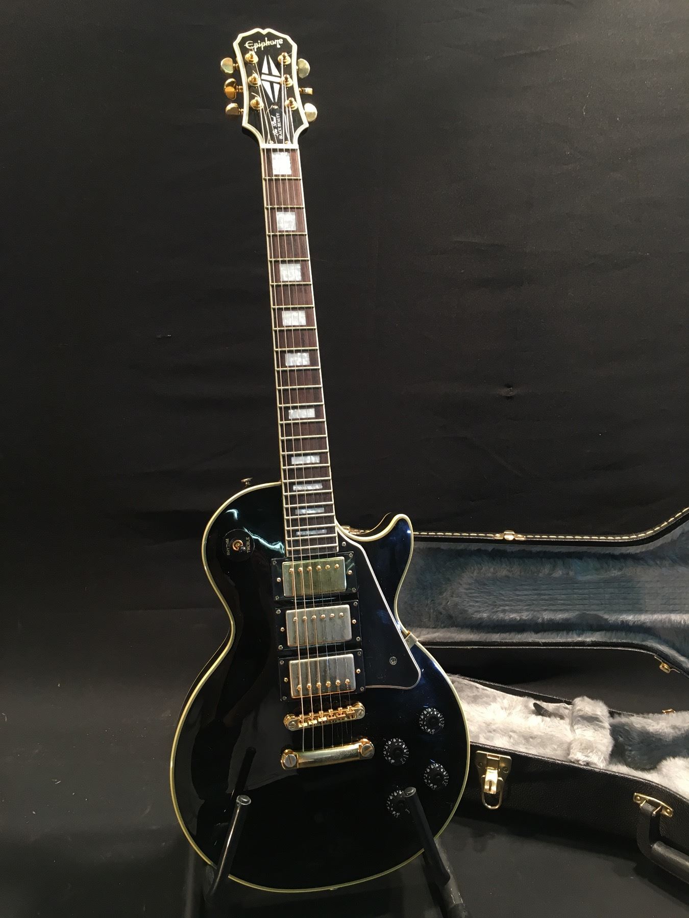 EPIPHONE LES PAUL BLACK BEAUTY GUITAR, WITH TRIPLE HUMBUCKER PICKUP, 3 POSITION PICKUP SELECTOR, 2 TONE AND 2 VOLUME CONTROLS, SERIAL NUMBER U05062610, GOLD HARDWARE, COMES WITH HARD SHELL CASE
