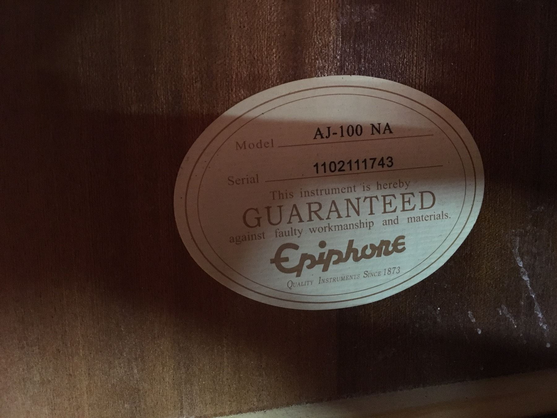 EPIPHONE MODEL AJ-100 NA ACOUSTIC GUITAR, SERIAL NUMBER 1102111743, COMES WITH SOFT CASE