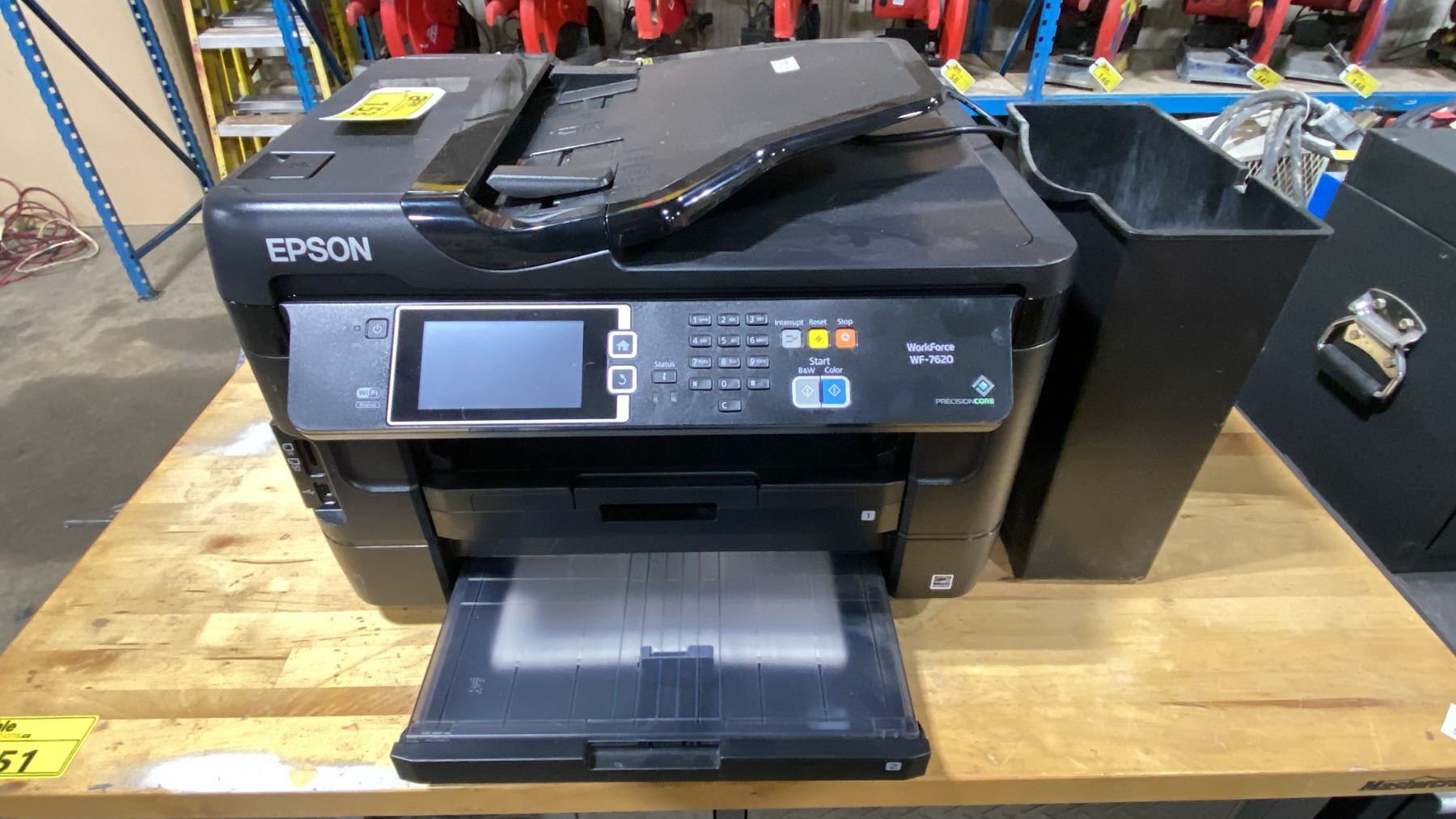 EPSON WF-7620 WORKFORCE ALL-IN-ONE WORKSTATION PRINTER WITH POWER CABLE & ELECTRIC SHREDDER WITH BIN