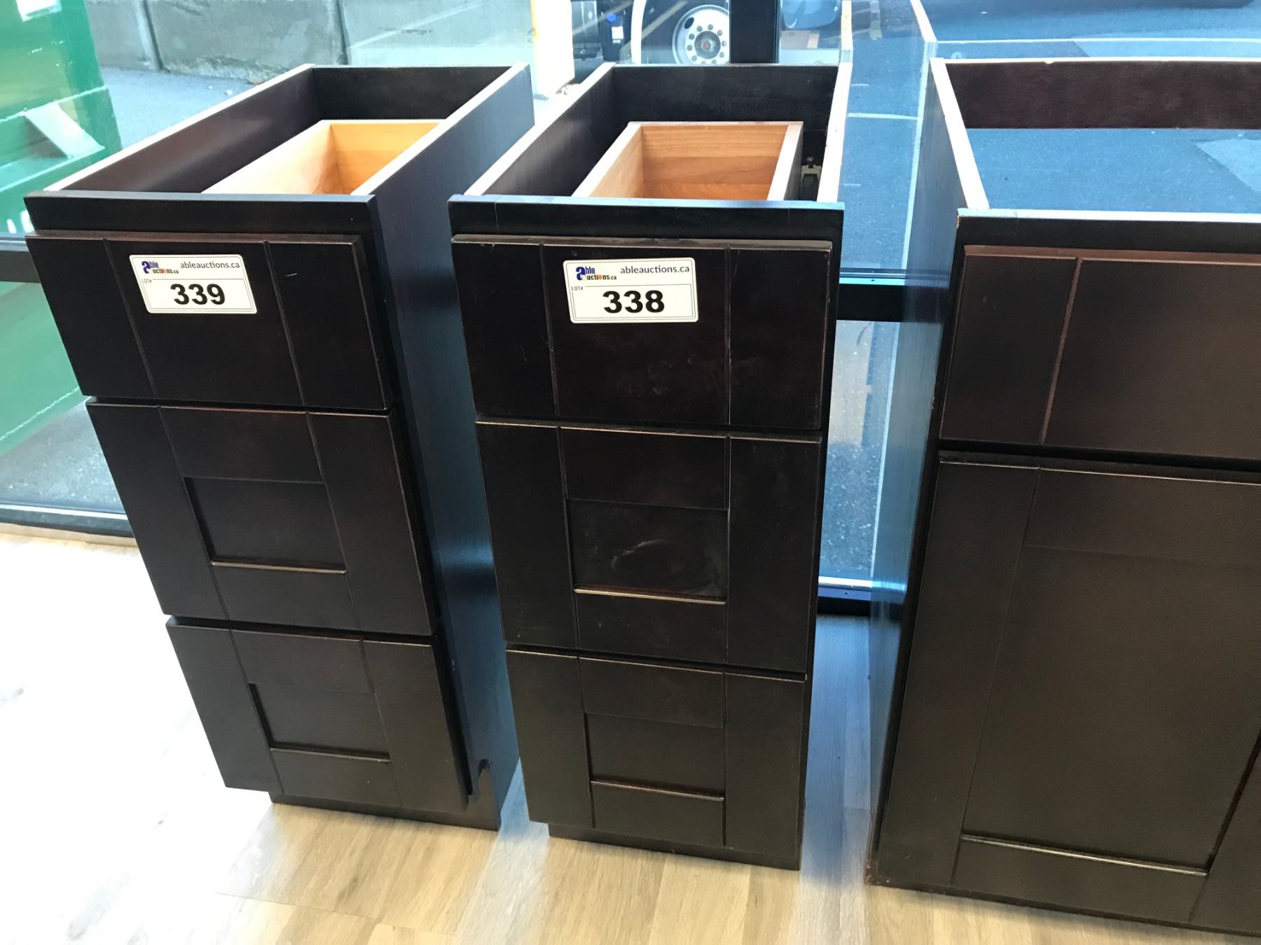 ESPRESSO 12  W X 21  D X 32  T 3 DRAWER VANITY PEDESTAL, MODEL: VA1221-32, (DISPLAY MODEL)