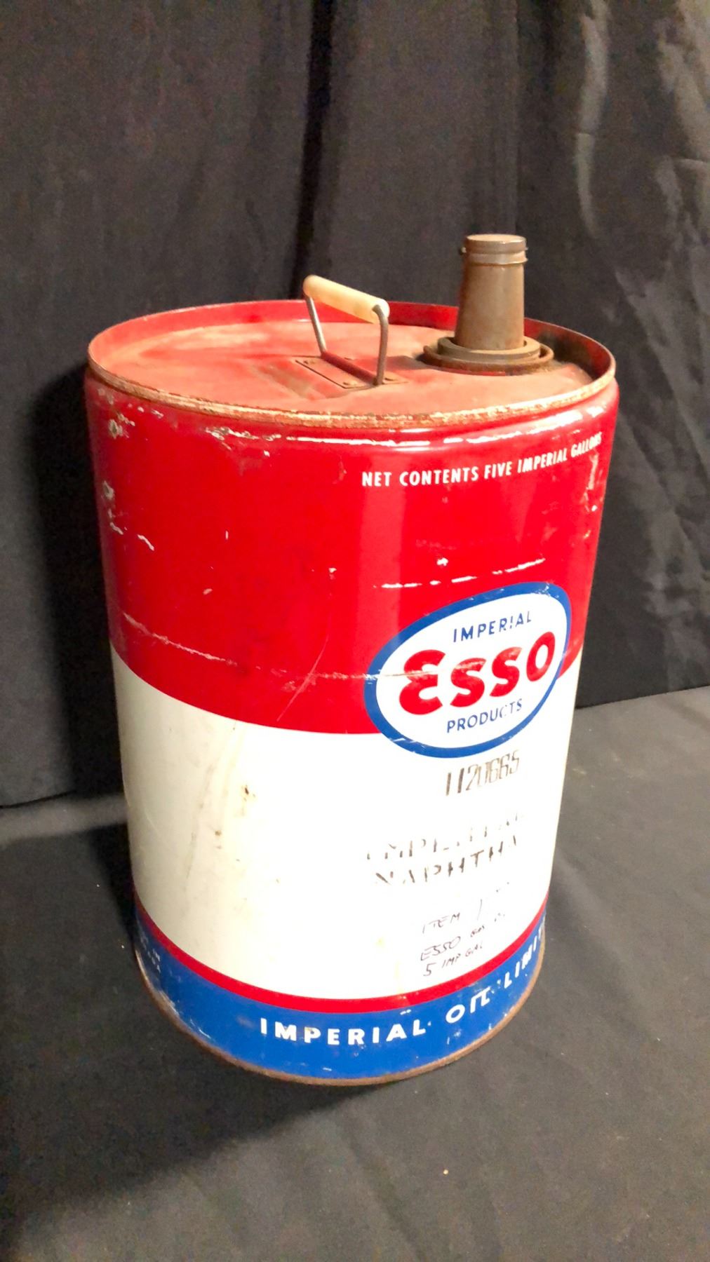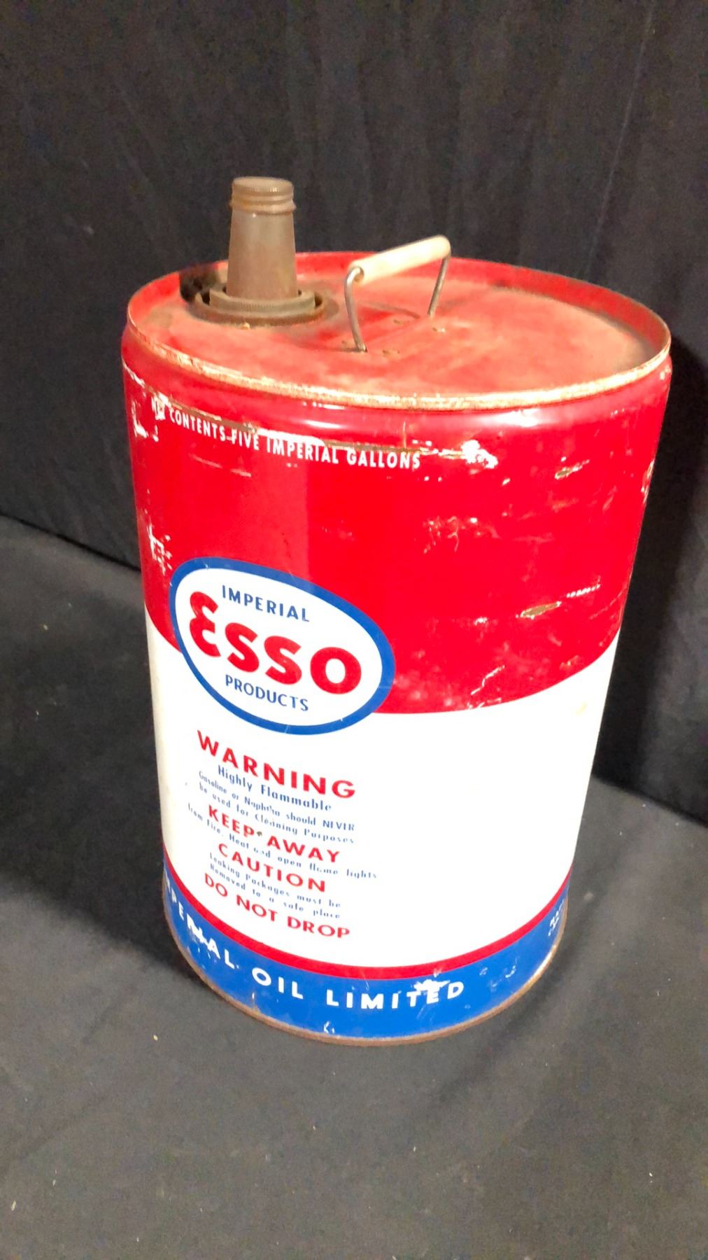 ESSO GAS/OIL 5 IMP GAL EMPTY METAL DRUM H18"