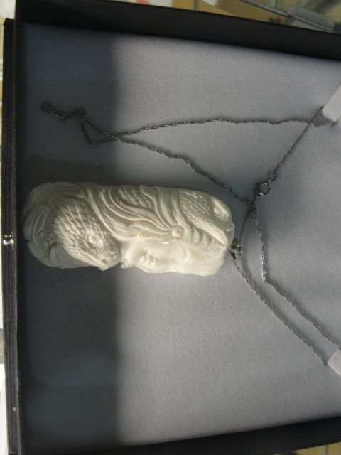 ESTATE NATIVE CARVED BUFFALO BONE STERLING SIVLER NECKLACE